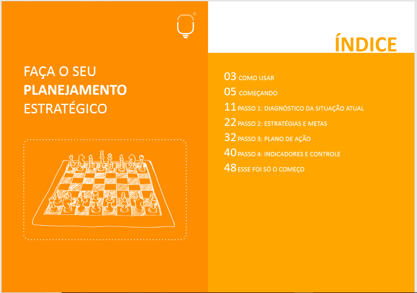 Essa é uma auto consultoria passo-a-passo para você desenvolver o seu próprio planejamento estratégico como se você fosse um consultor. Ao longo desse manual você receberá diversas dicas, verá exemplos práticos e terá a ajuda de várias de nossas ferramentas para montar o seu próprio planejamento estratégico.