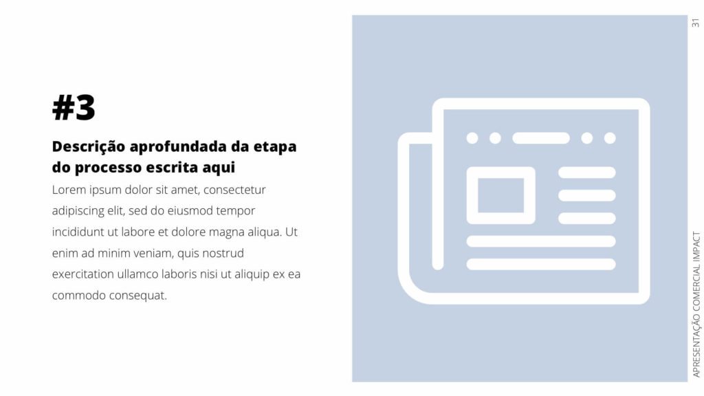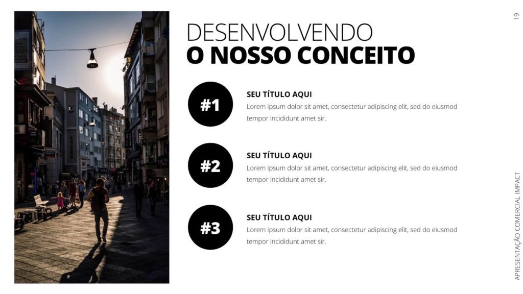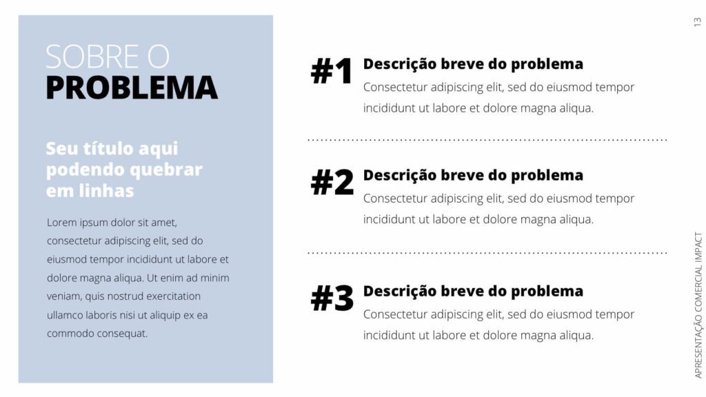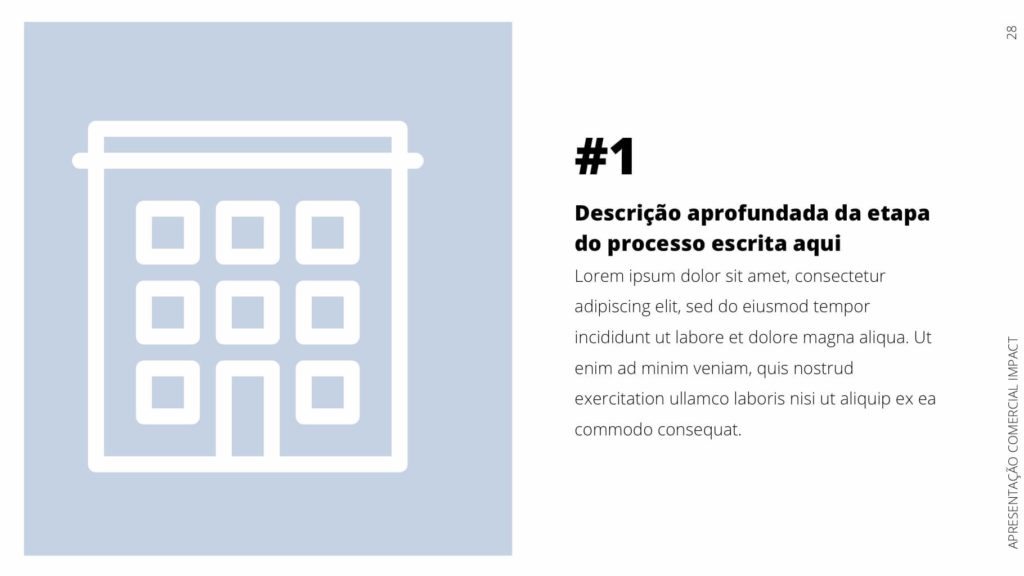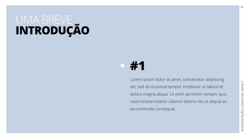 A apresentação comercial Impact pode ser utilizada por agências de design, agências de publicidade, empresas de consultoria, empresas de serviços em geral, profissionais liberais e muito mais.