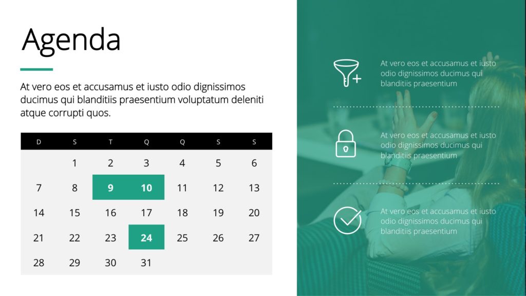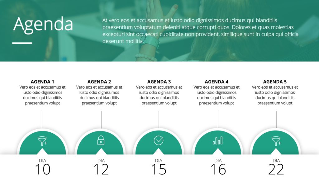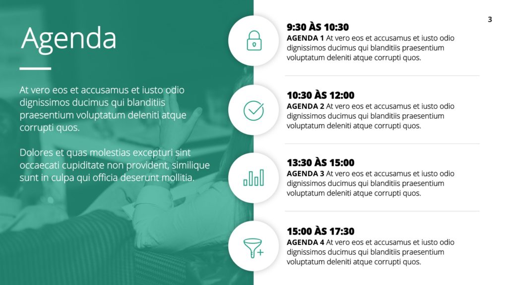 A Apresentação de Agenda EasyBiz é um template de powerpoint que possui inúmeros formatos de agenda para você apresentar datas de eventos, reuniões ou até mesmo cronograma de projetos.