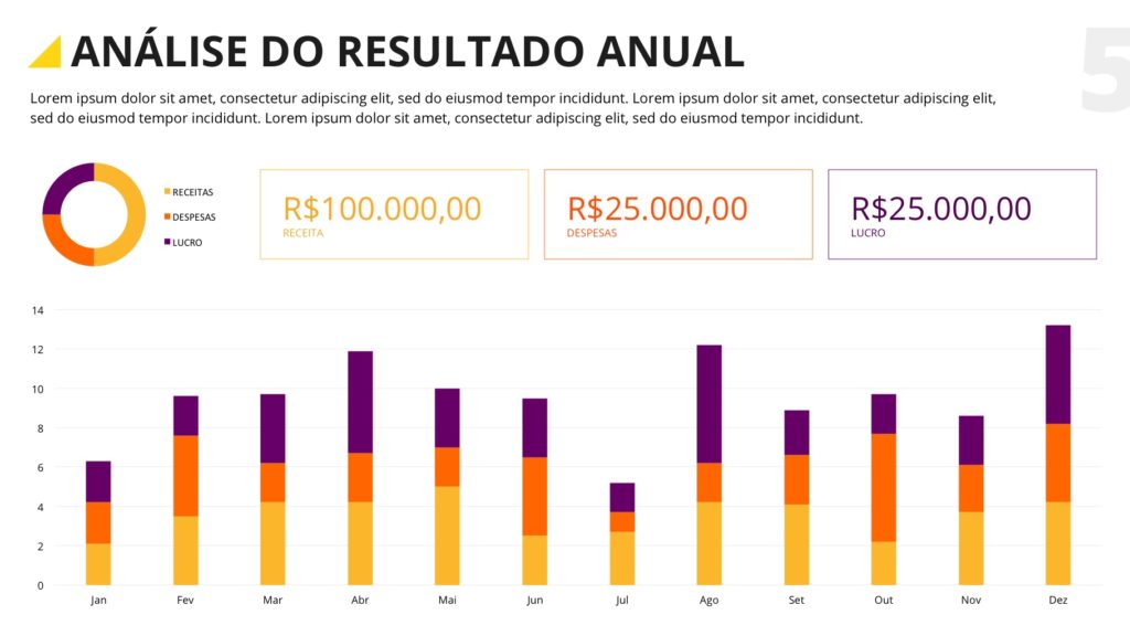 Com um total de 17 slides prontos contendo diferentes formatos de gráficos, a apresentação é 100% editável, podendo ter suas cores alteradas, imagens e gráficos customizados de acordo com a sua preferência.