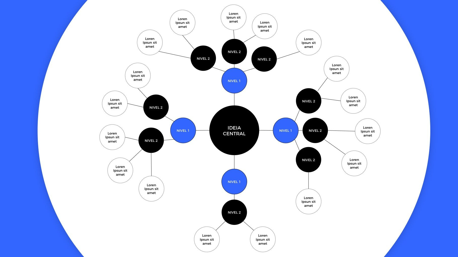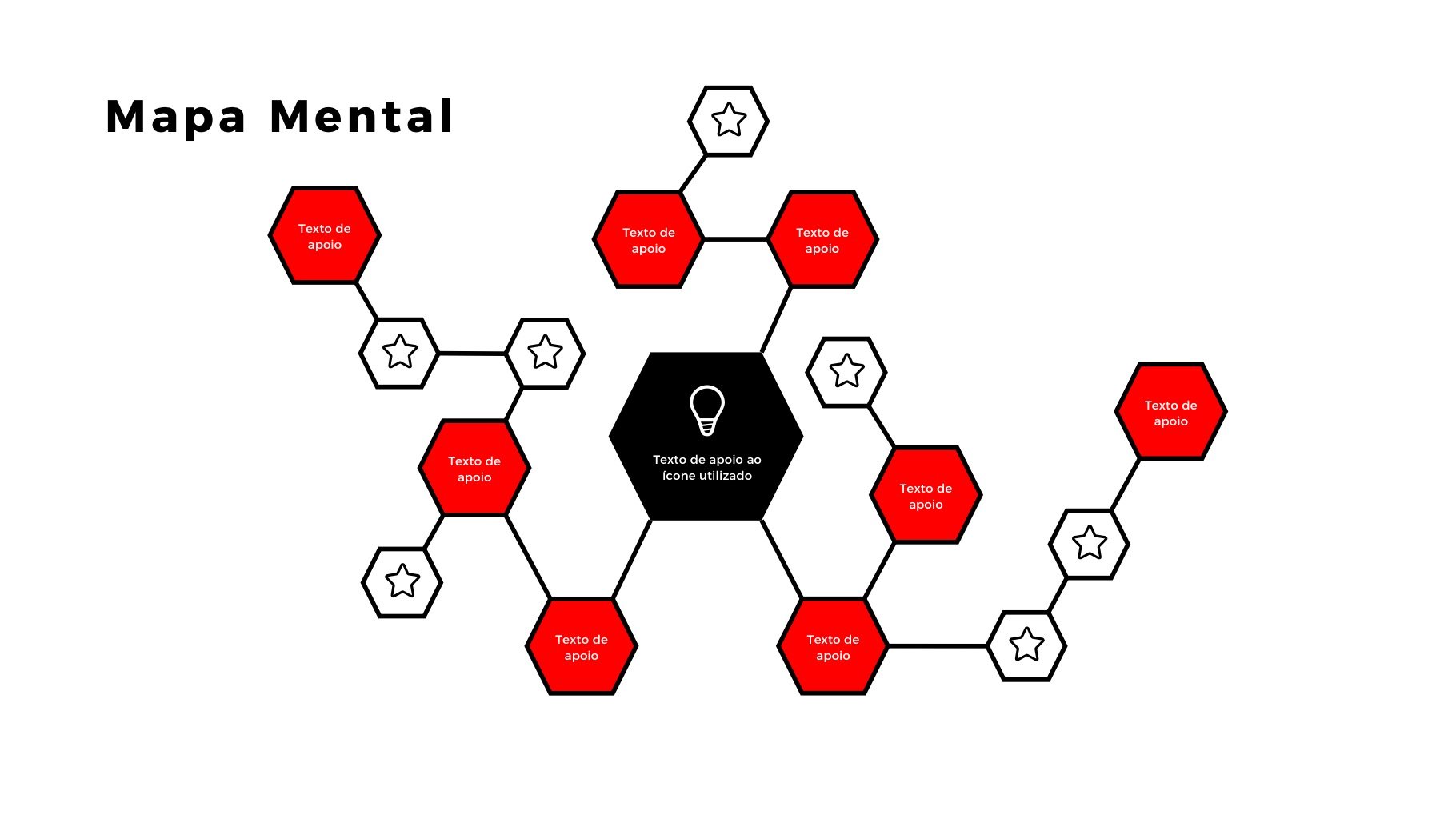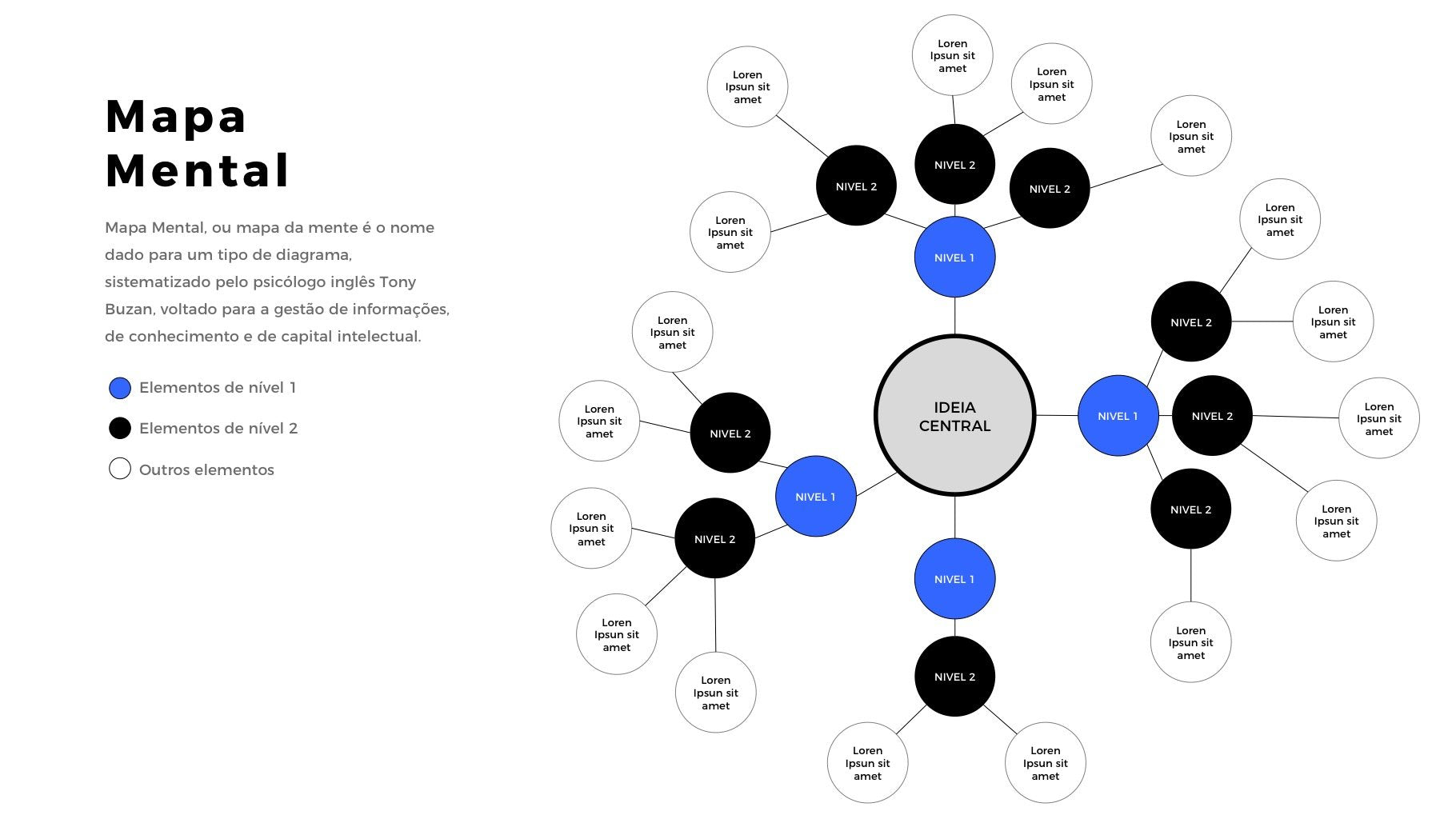 A apresentação de Mapa Mental Flex Map é ideal para quem quer mostrar o resultado de um brainstorm ou da relação entre diferentes tópicos ou até mesmo a arquitetura de informação de um website. São inúmeras as possibilidades.