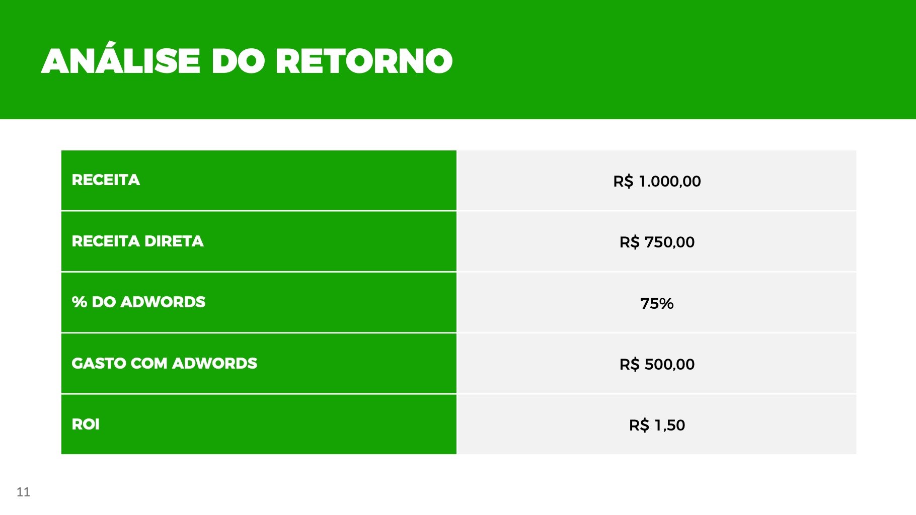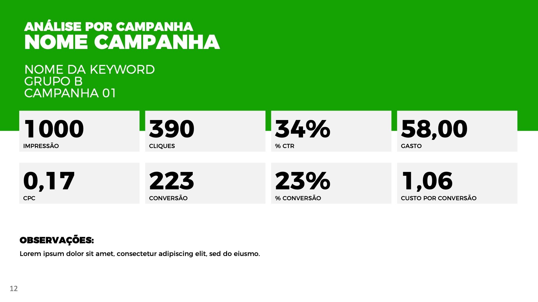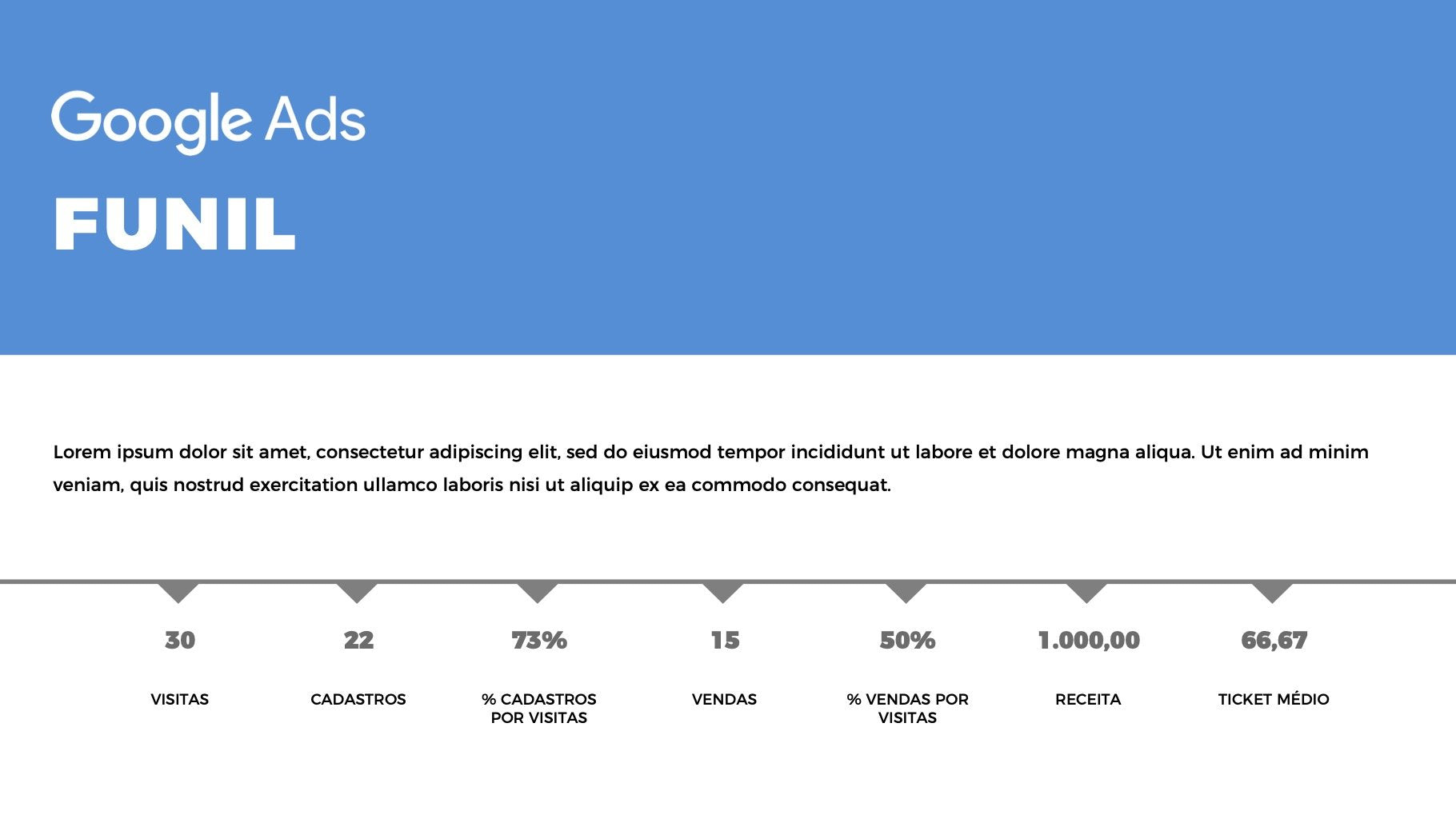 A Apresentação de Performance de Adwords é um tema de powerpoint perfeito para quem precisa apresentar o andamento das campanhas no Google Adwords.