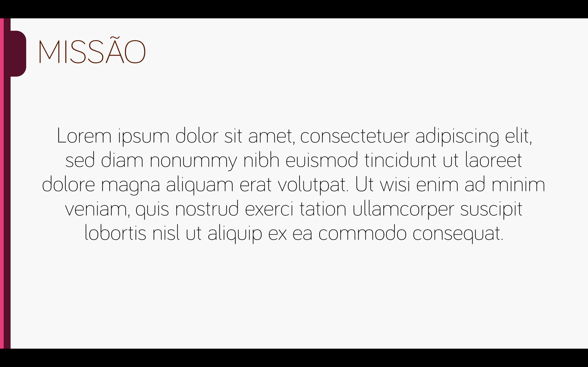 A apresentação também pode ser utilizada em casos de novos negócios que queiram apresentar seu Planejamento Estratégico para investidores ou para os novos membros da equipe do projeto.