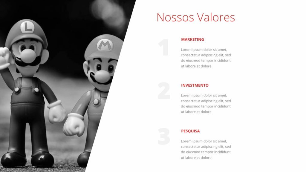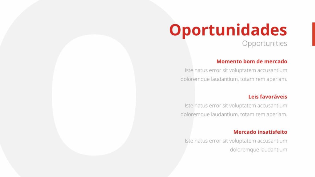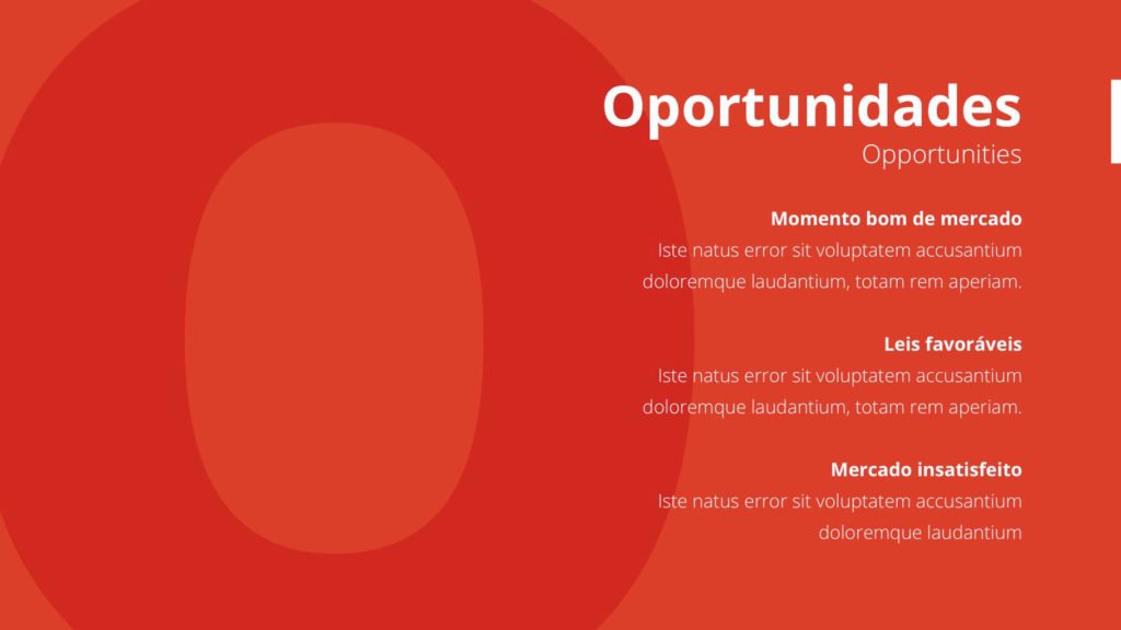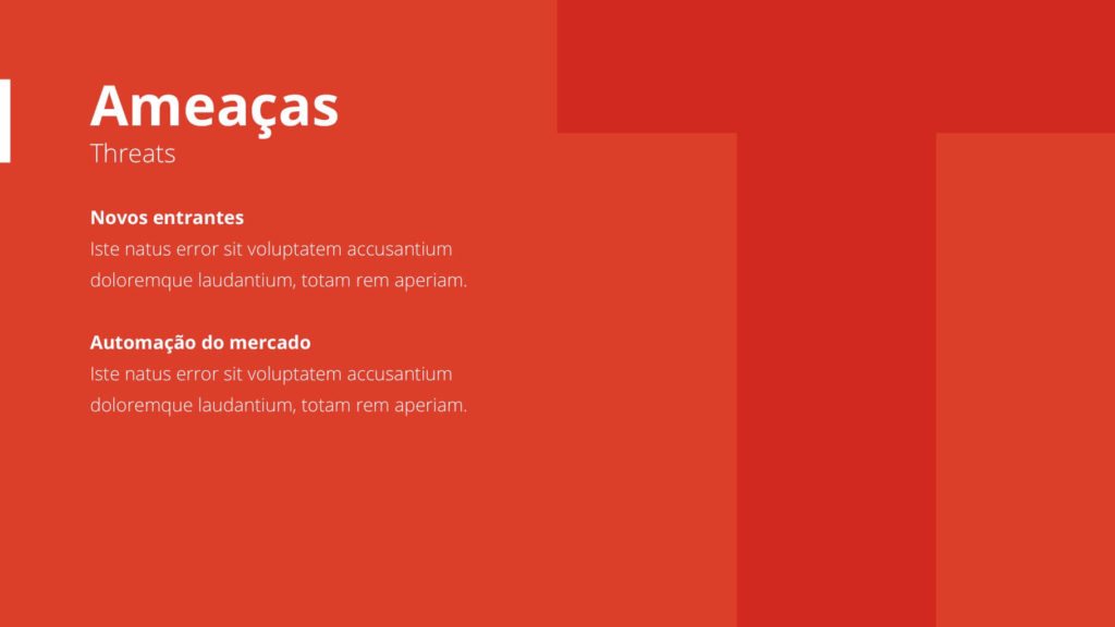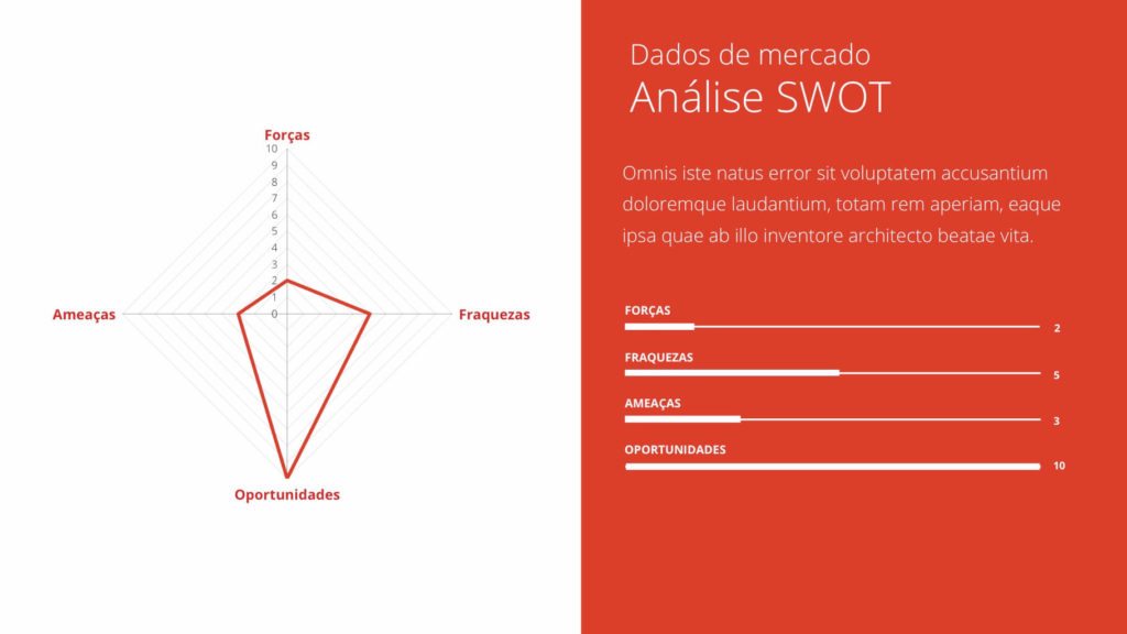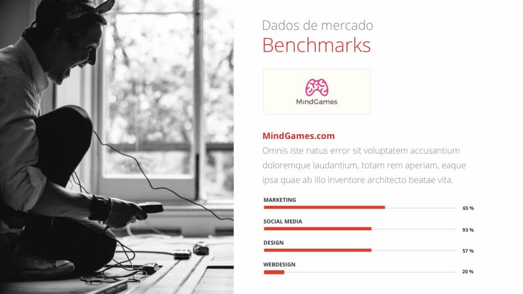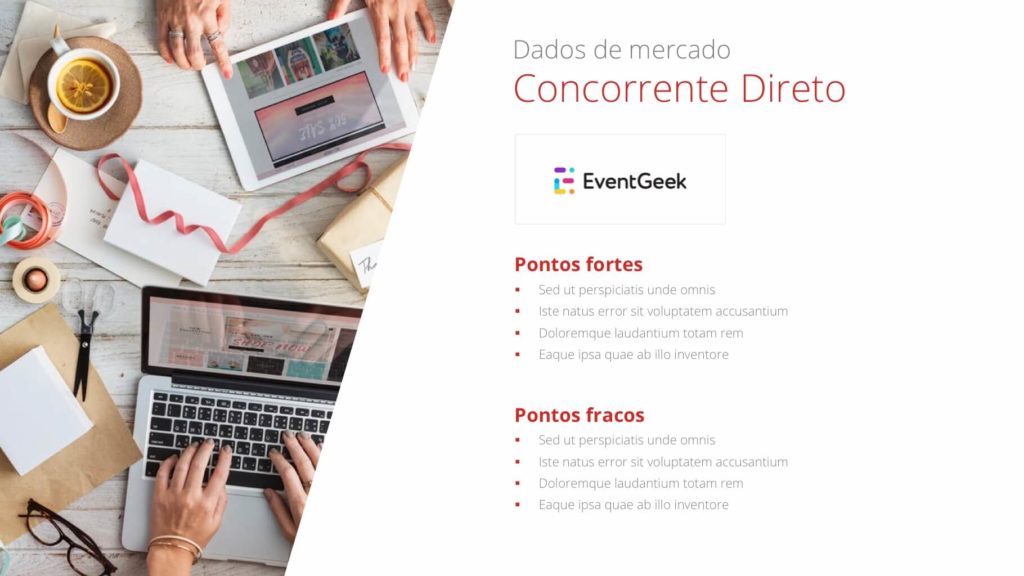 Dos 4P's de Marketing, Análise de Concorrentes e Oportunidades, Riscos e Pontos de Melhoria, tudo pode ser apresentado de maneira mais visual e impactante, facilitando a assimilação por parte de toda a equipe e o entendimento por parte dos gestores e diretores da empresa.