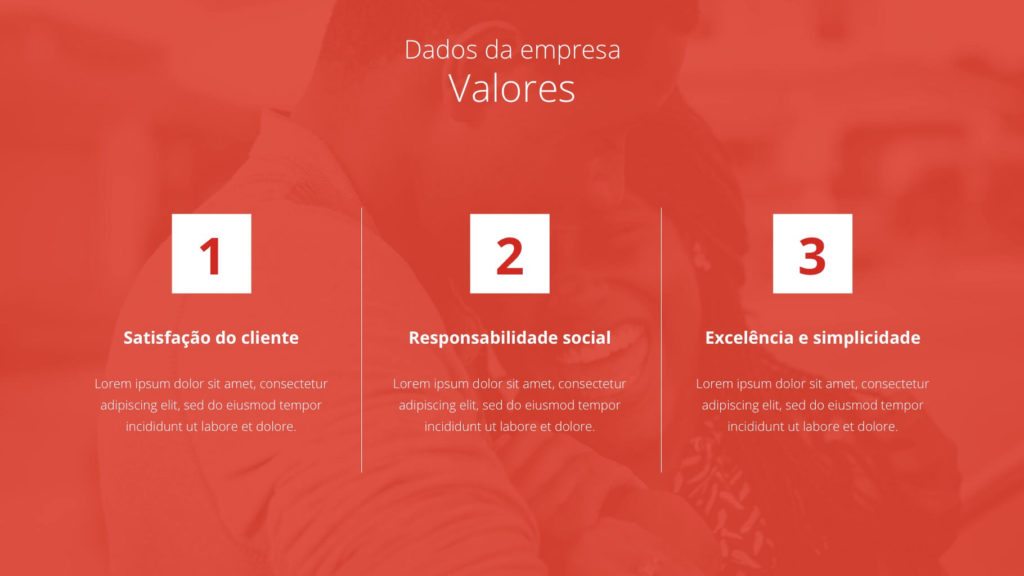 O modelo da apresentação é 100% editável e personalizável. Isso significa que você pode, ao abrir o arquivo em Powerpoint, alterar qualquer informação para inserir os seus dados. Gráficos, imagens e textos, tudo é editável e pode ser personalizado para o seu uso.