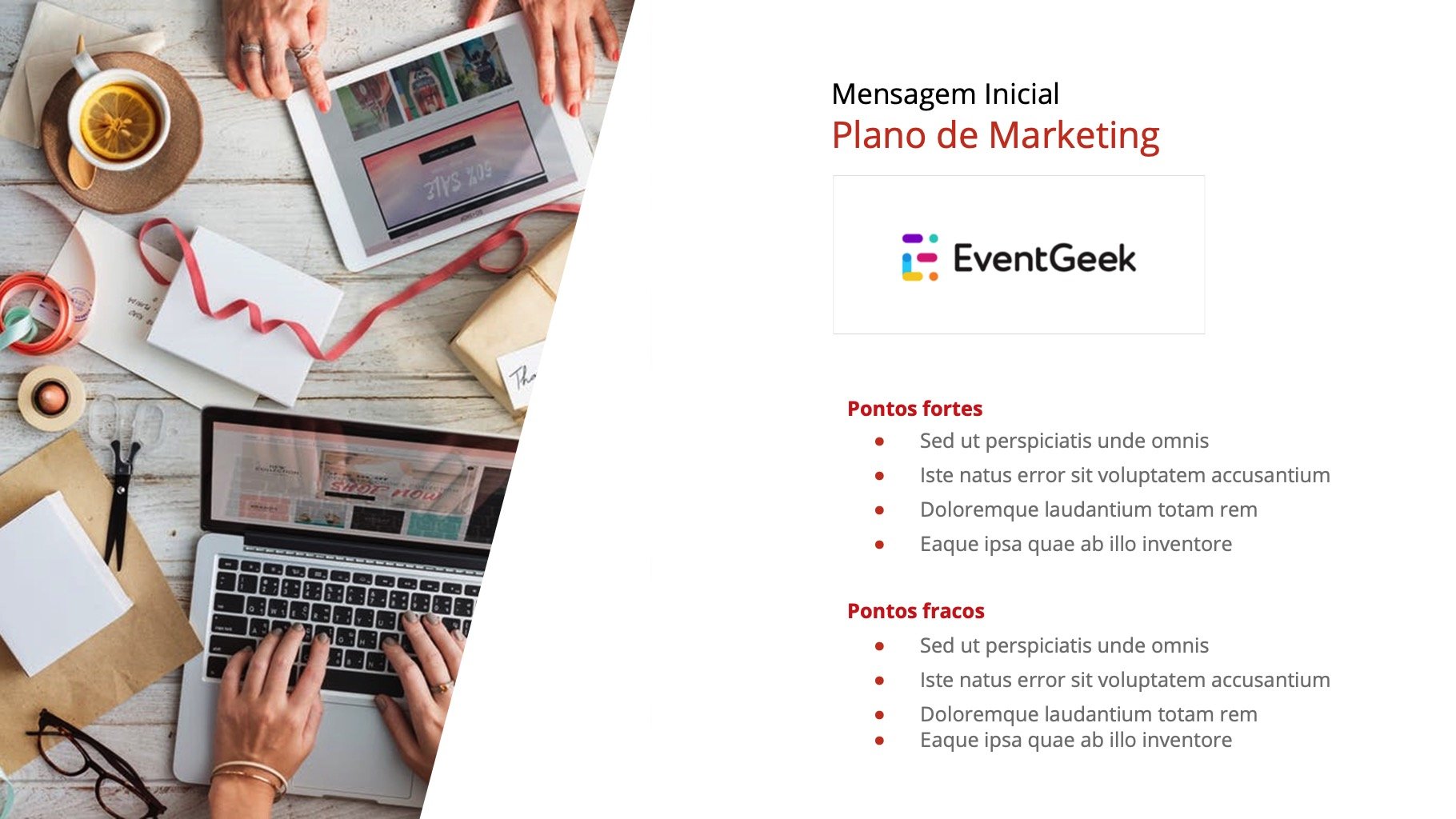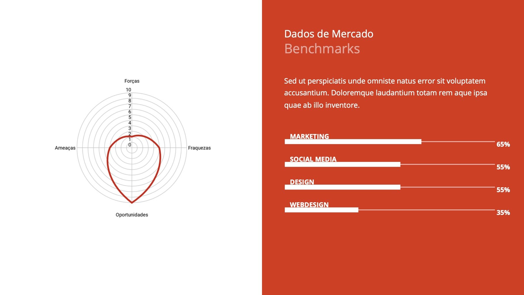 Dos 4P's de Marketing, Análise de Concorrentes e Oportunidades, Riscos e Pontos de Melhoria, tudo pode ser apresentado de maneira mais visual e impactante, facilitando a assimilação por parte de toda a equipe e o entendimento por parte dos gestores e diretores da empresa.