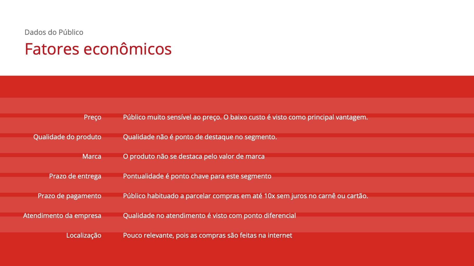 - Curva de Valor (comparativo com público e concorrentes diretos e indiretos)