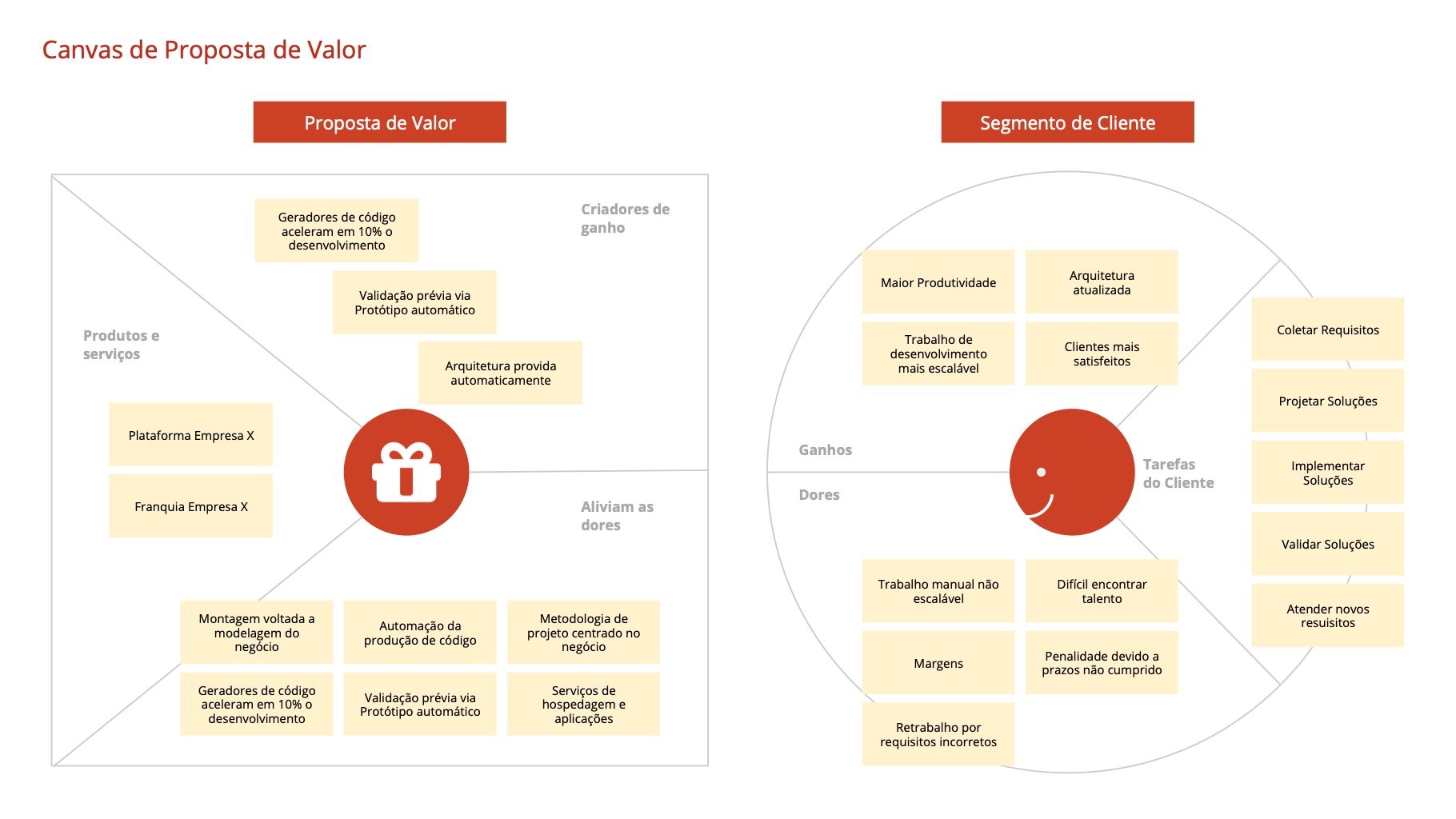 - Proposta de Valor (pode ser o Canvas de Proposta de Valor e a definição em seguida)