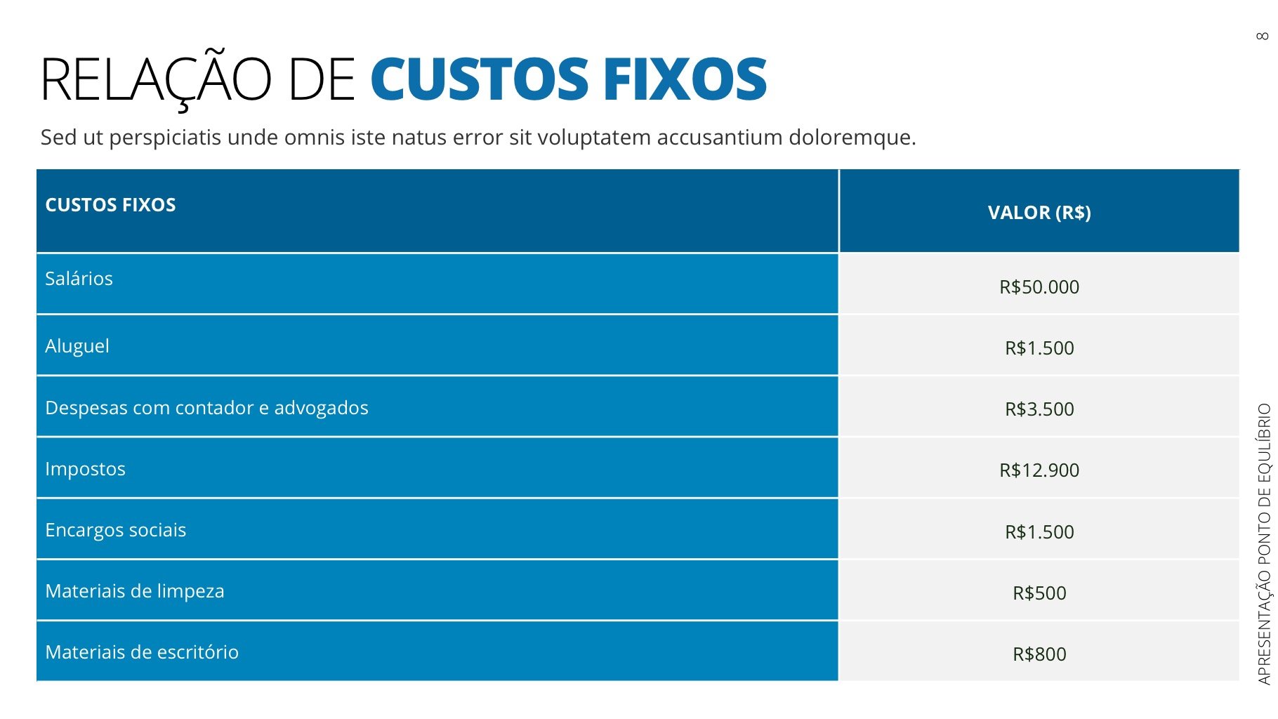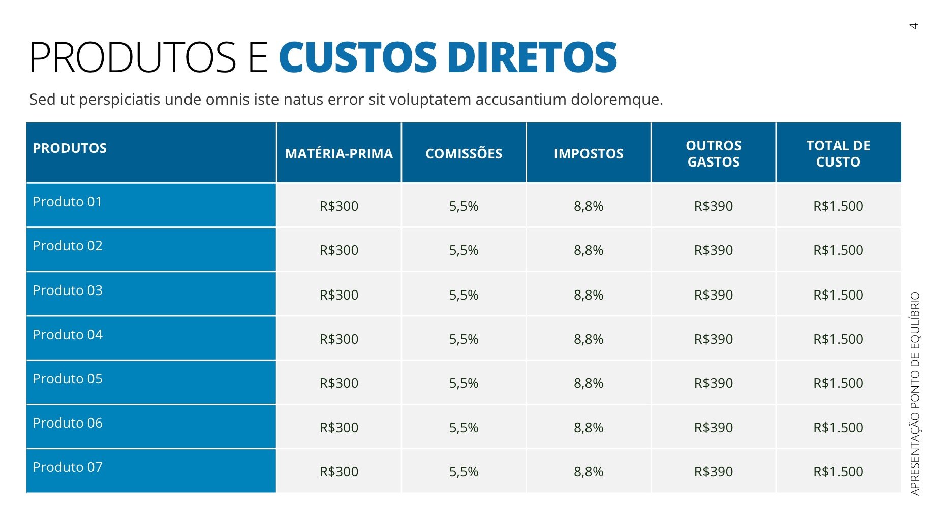 A Apresentação de Ponto de Equilíbrio - Go Fast é essencial para profissionais da área financeira, precificação ou de custos que estão realizando um estudo sobre o ponto de equilíbrio e precisam apresentá-lo profissionalmente.