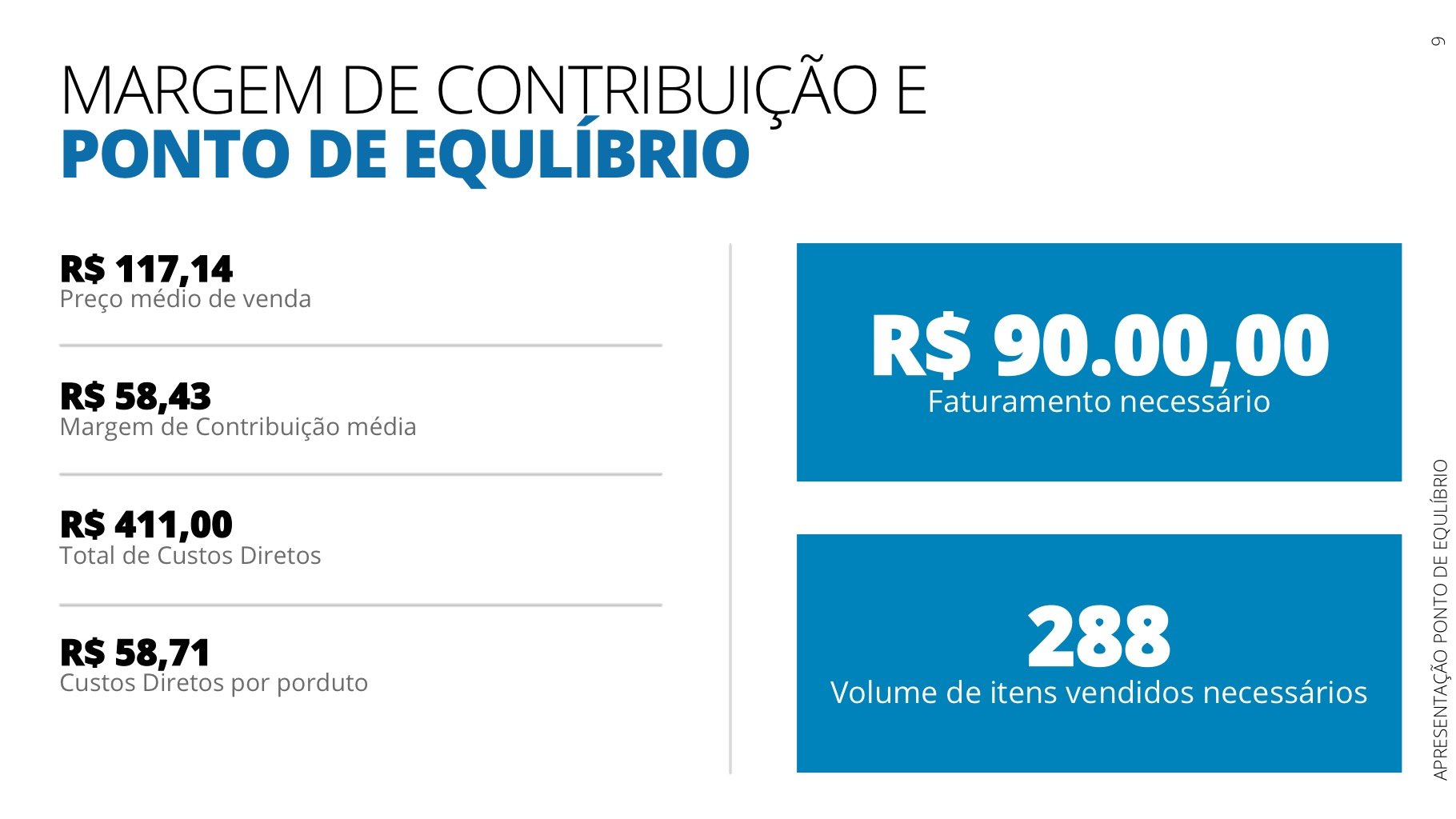 o ponto de equilíbrio é a combinação de valores chave que vão mostrar qual o montante de receita mensal suficiente para cobrir todos os seus custos fixos e variáveis. É um cálculo para descobrir a partir de que ponto a empresa consegue se pagar e passa a ter lucro.
