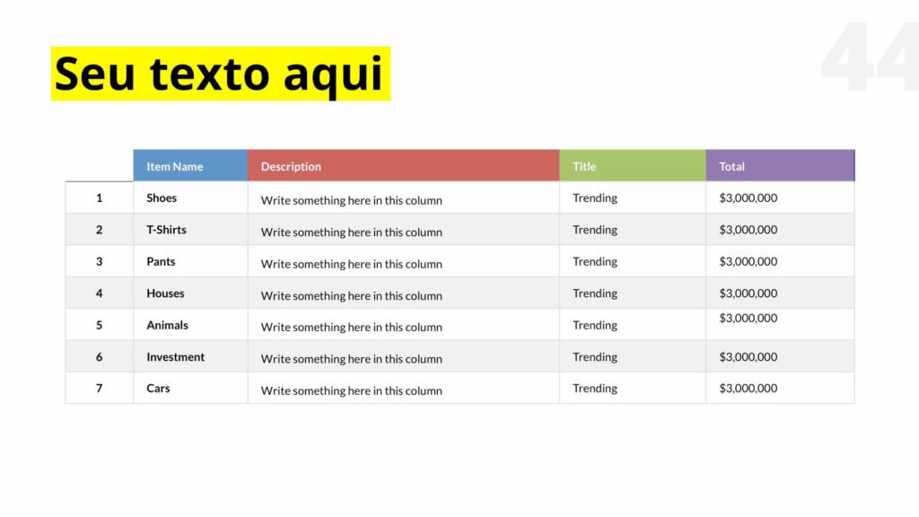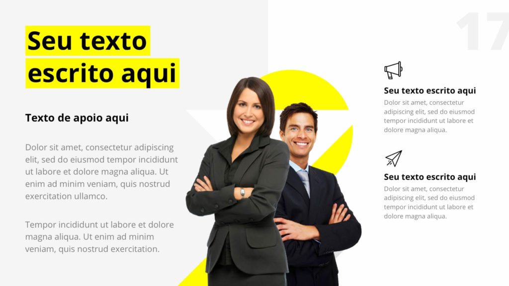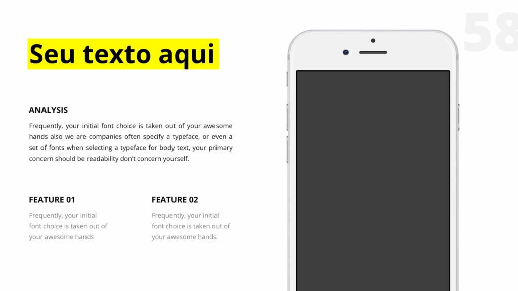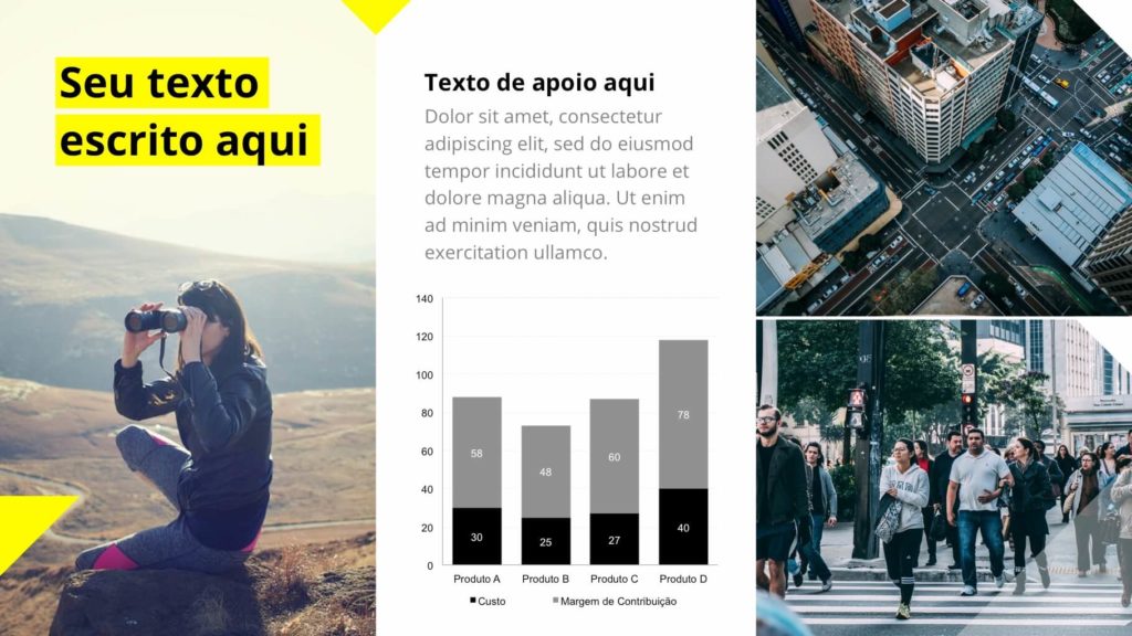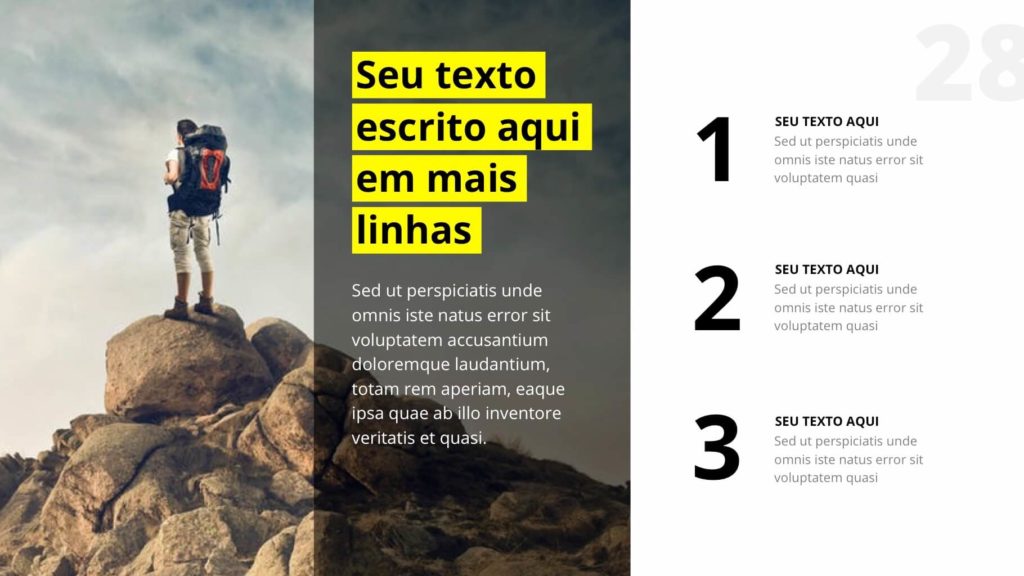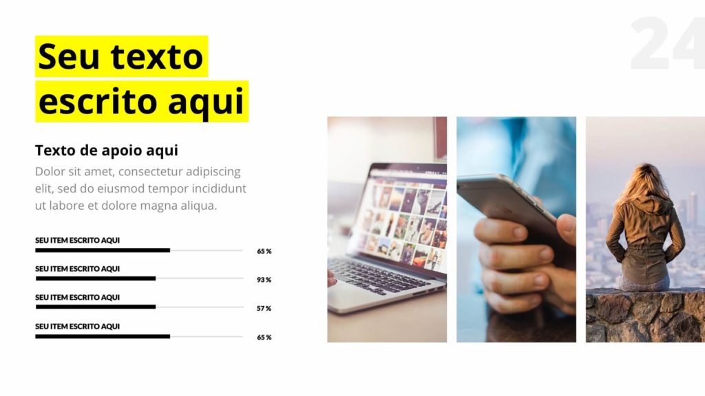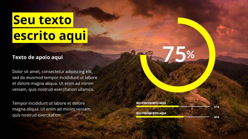 São mais de 60 slides únicos e editáveis. Acompanha fontes, imagens e já vem com as versões prontas para usar no PowerPoint ou Keynote.