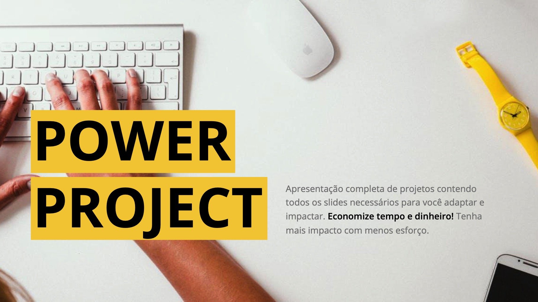 A Apresentação de Projetos Power Project é uma apresentação em Google Slides completa, contendo todos os slides necessários para você adaptar e impactar. Economize tempo e dinheiro! Tenha mais impacto com menos esforço.
