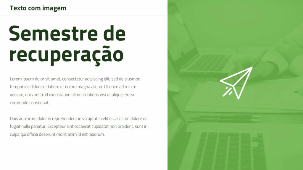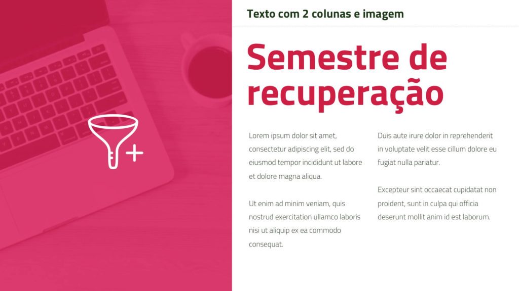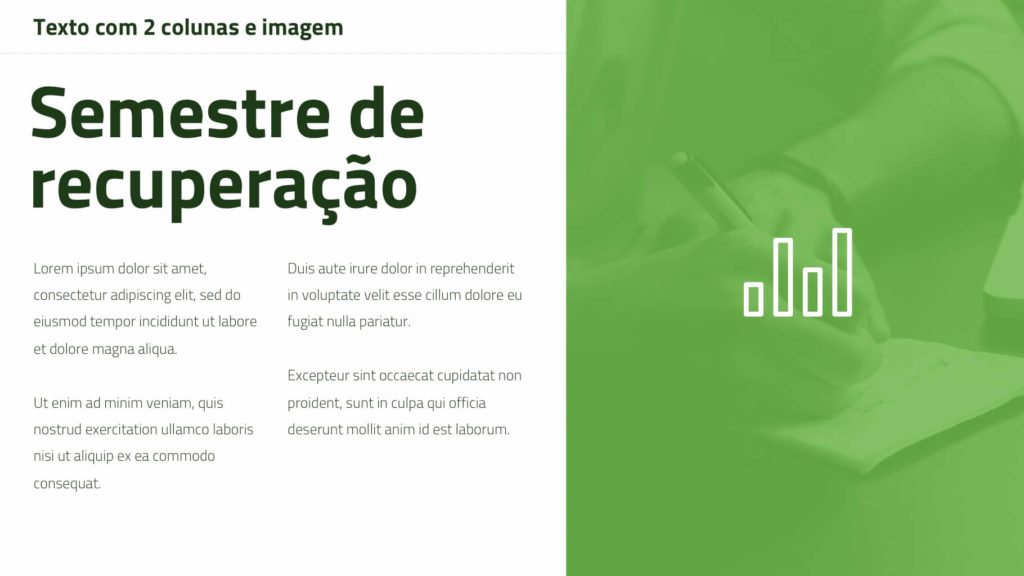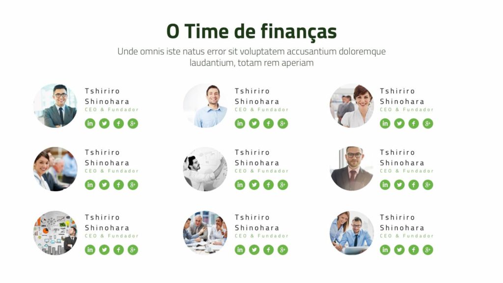 Os slides contém espaços de imagens (chamadas placeholder) onde você poderá simplesmente arrastar a sua imagem para dentro do slide e pronto. Sua imagem se ajustará automaticamente a forma, seja ela retangular, redonda, etc.