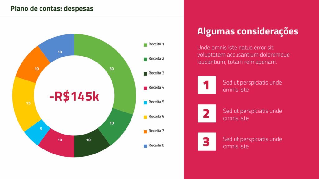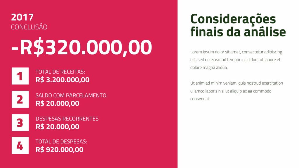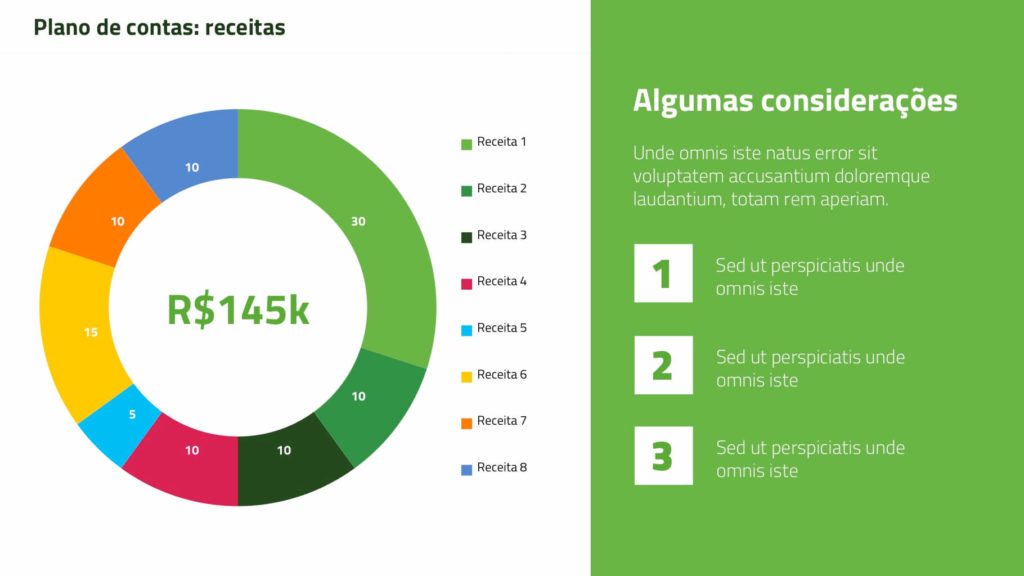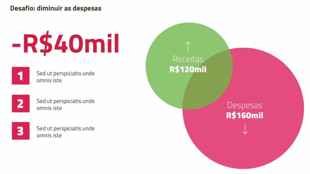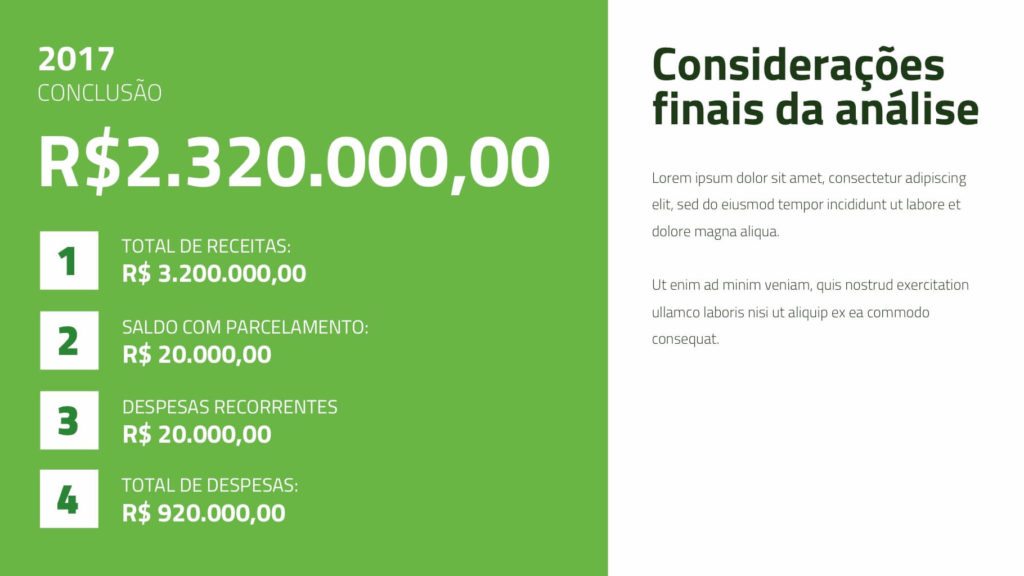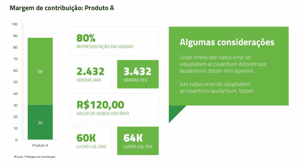 Essa apresentação pode ser utilizada em vários momentos como: demonstração de resultados mensais, semestrais e anuais, ao propor cortes ou novos investimentos na empresa e mesmo ao apresentar um novo planejamento financeiro ou controle orçamentário para o novo ano da empresa.