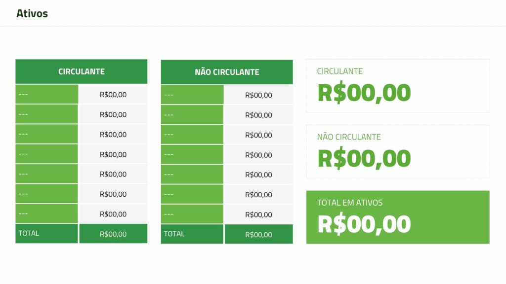 - Balanço patrimonial (ativo, passivo e patrimônio líquido)