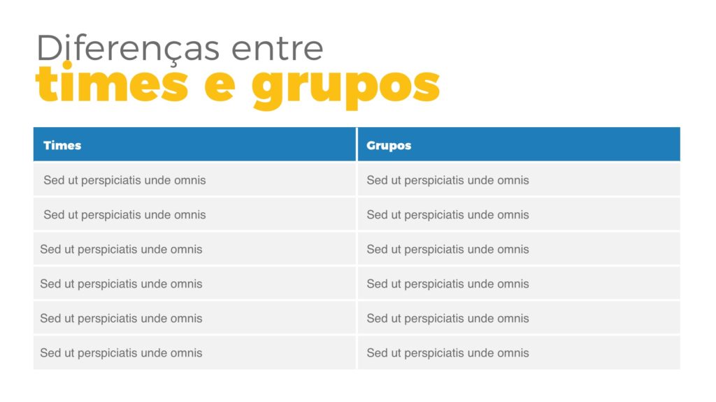 Uma das melhores formas de melhorar isso é utilizando apresentações em powerpoint como a Team Work para manter todos sempre na mesma página, seja em reuniões semanais ou treinamentos mensais. Esses momentos podem ser fundamentais para trabalhar o espírito de equipe e unir ainda mais as pessoas.