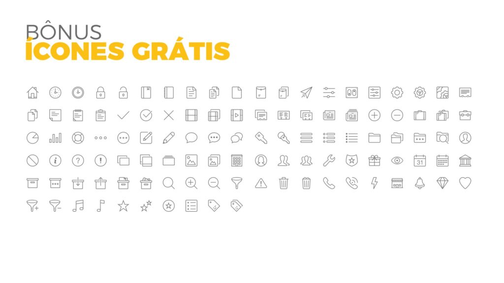Com 12 slides prontos 100% editáveis e com um grupo de ícones próprio, é possível formatar esta apresentação para diversos objetivos.