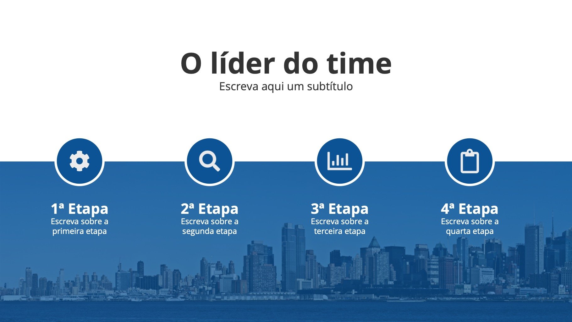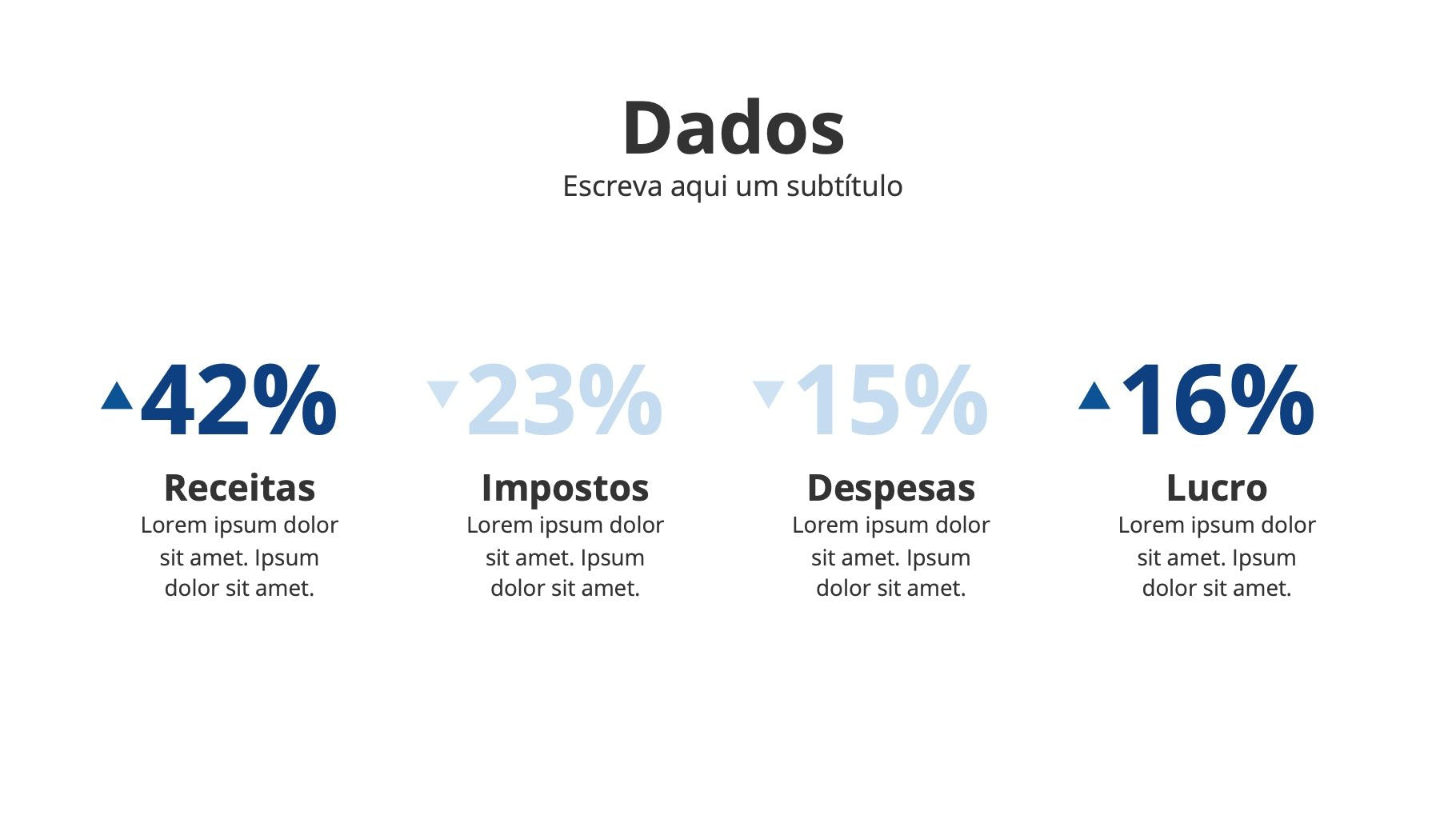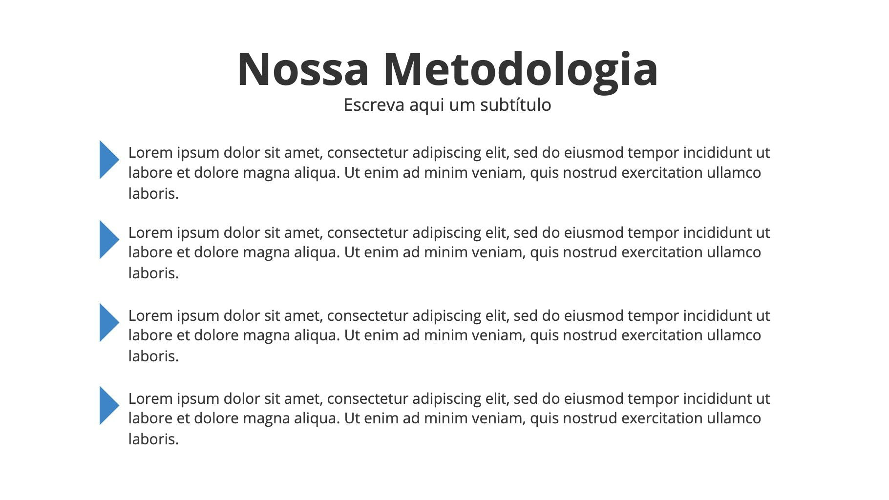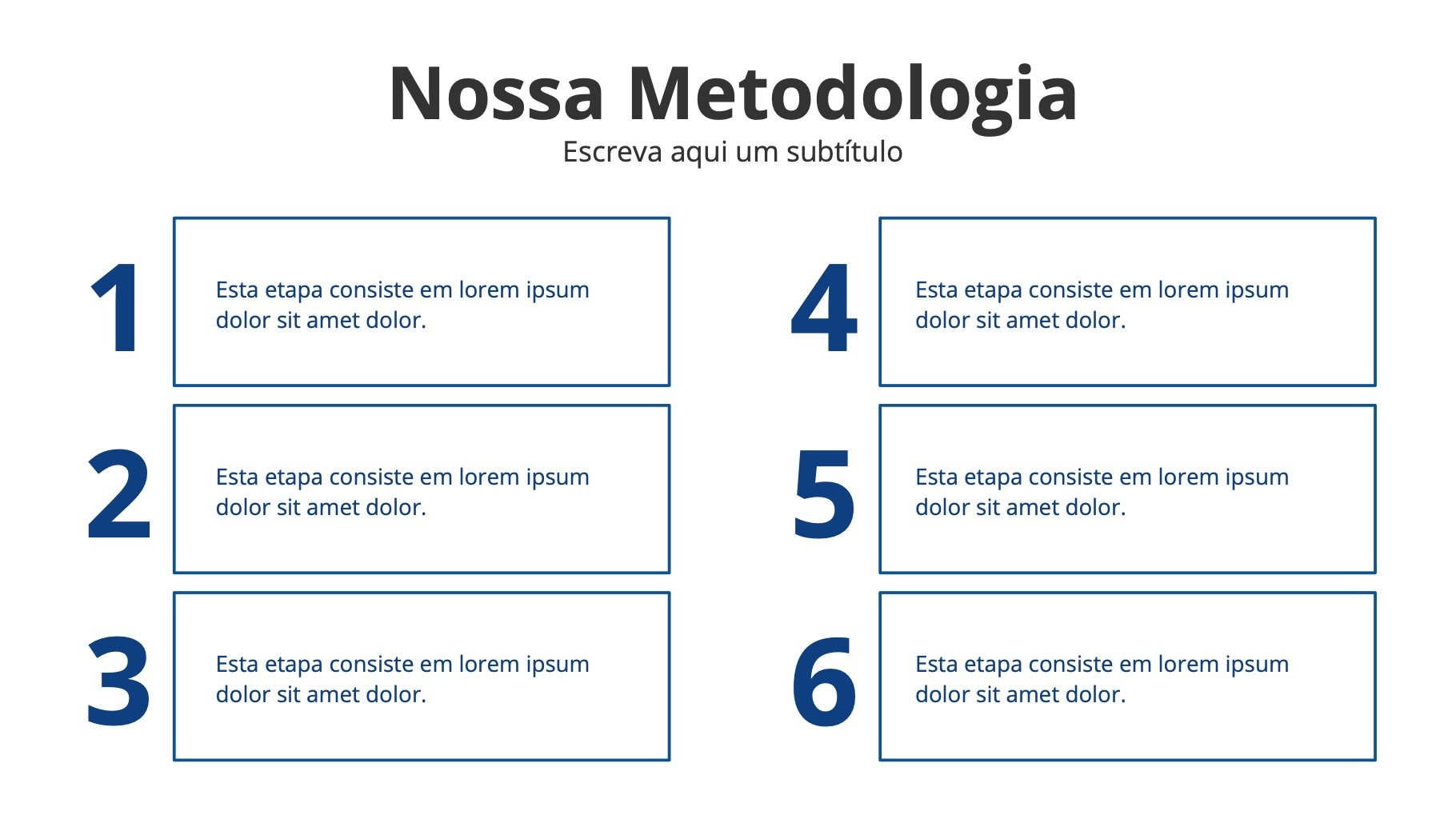 Todos os elementos são 100% editáveis e você poderá alterar facilmente os textos, cores e qualquer elemento da apresentação.