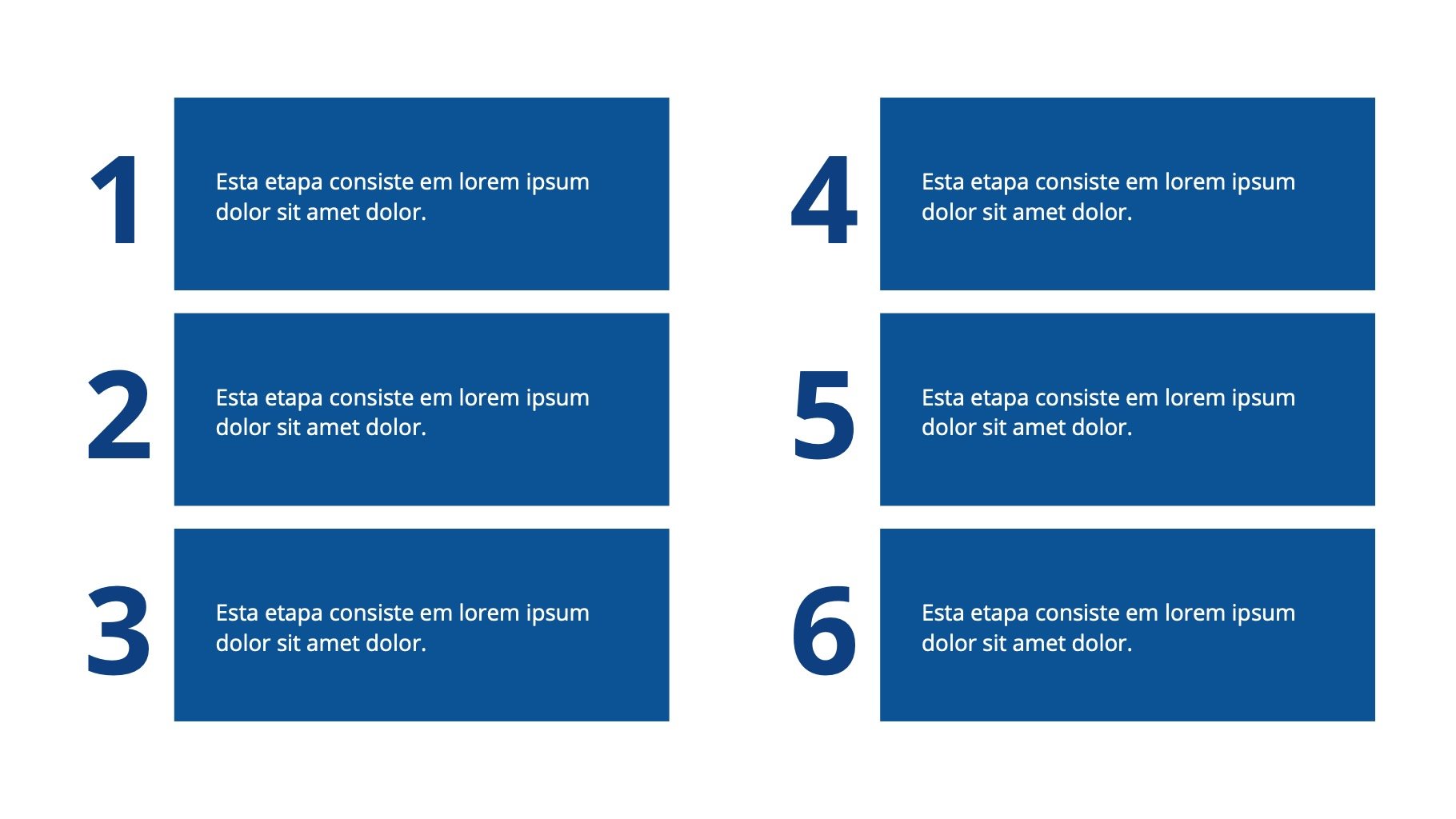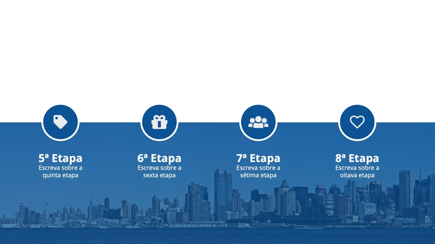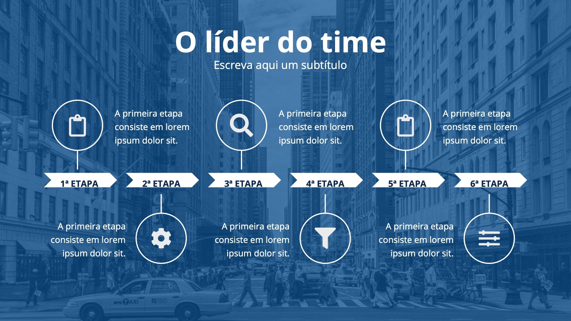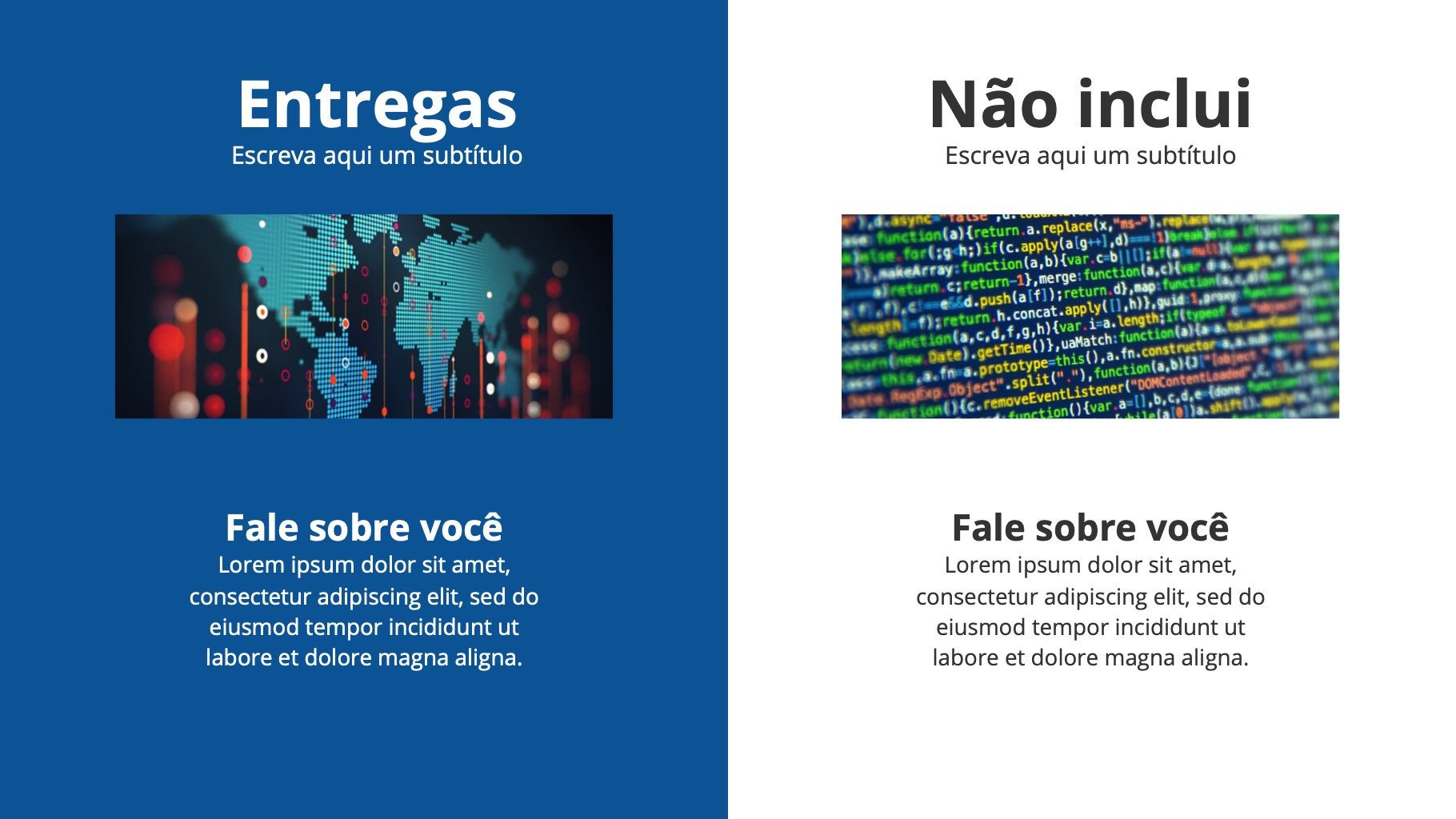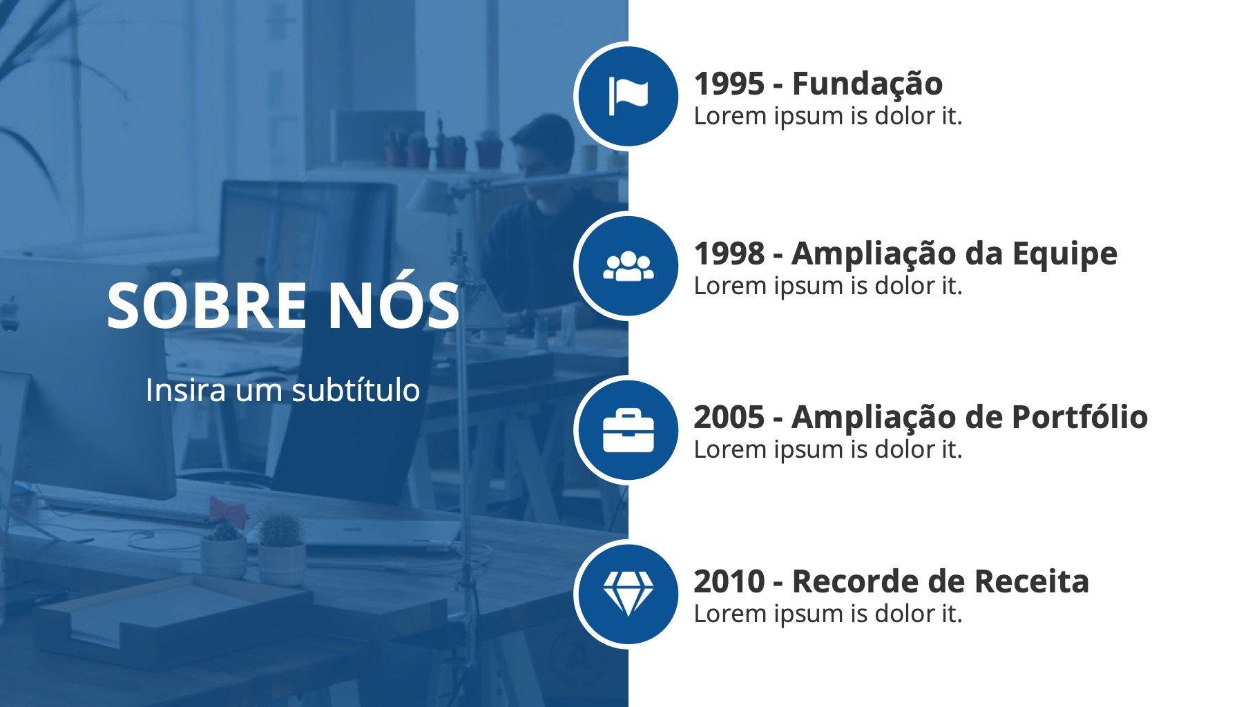 Todos os elementos são 100% editáveis e você poderá alterar facilmente os textos, cores e qualquer elemento da apresentação.