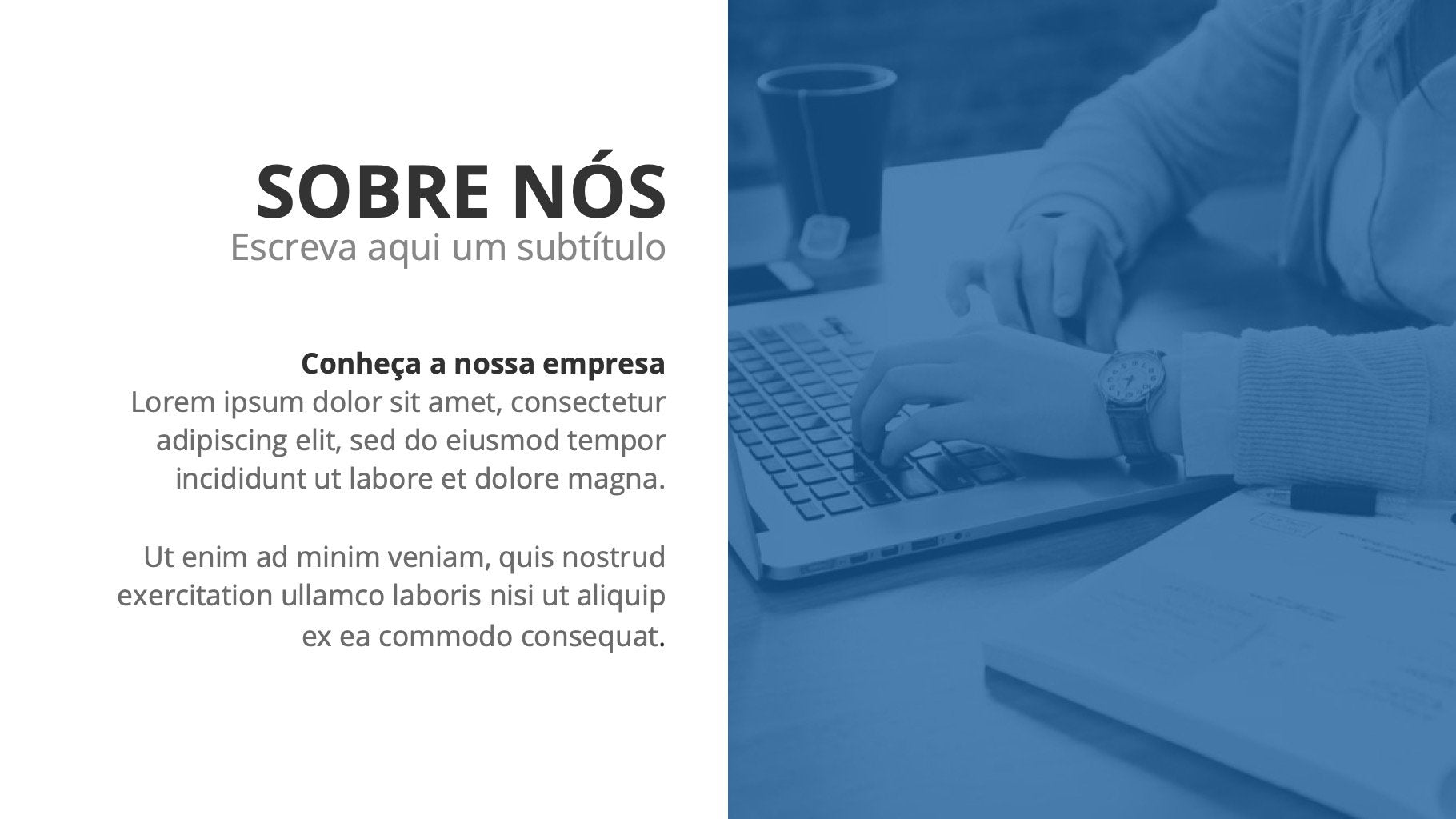 • Apresentação da Empresa: Por último, mas não menos importante, é necessário apresentar a empresa e seu histórico, mostrando um pouco da história e dos antigos clientes. Se tiver depoimentos, melhor ainda.