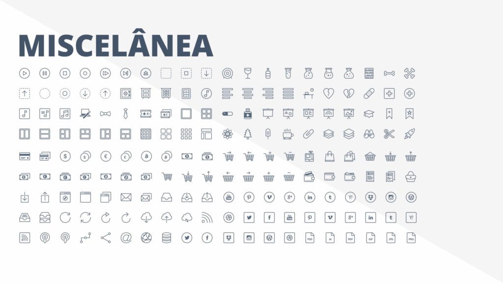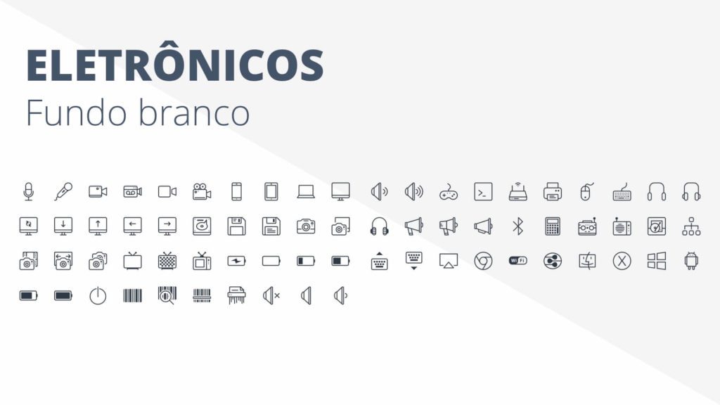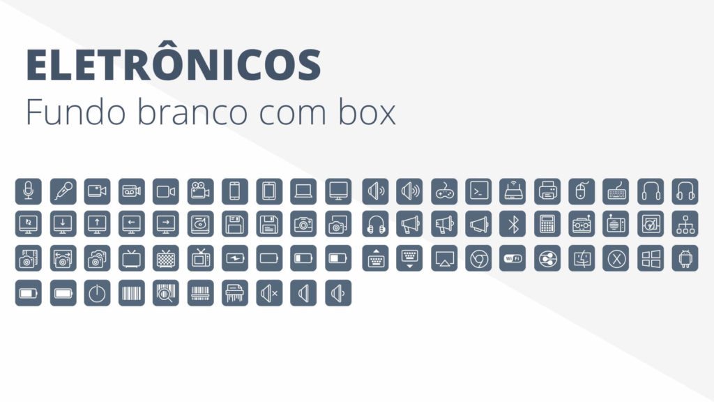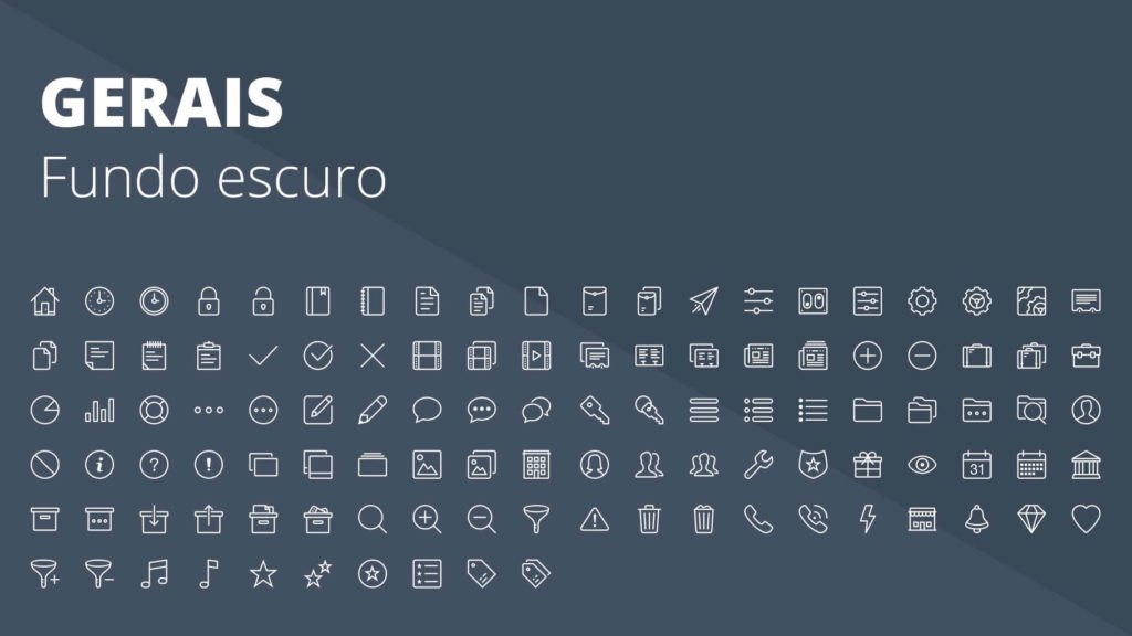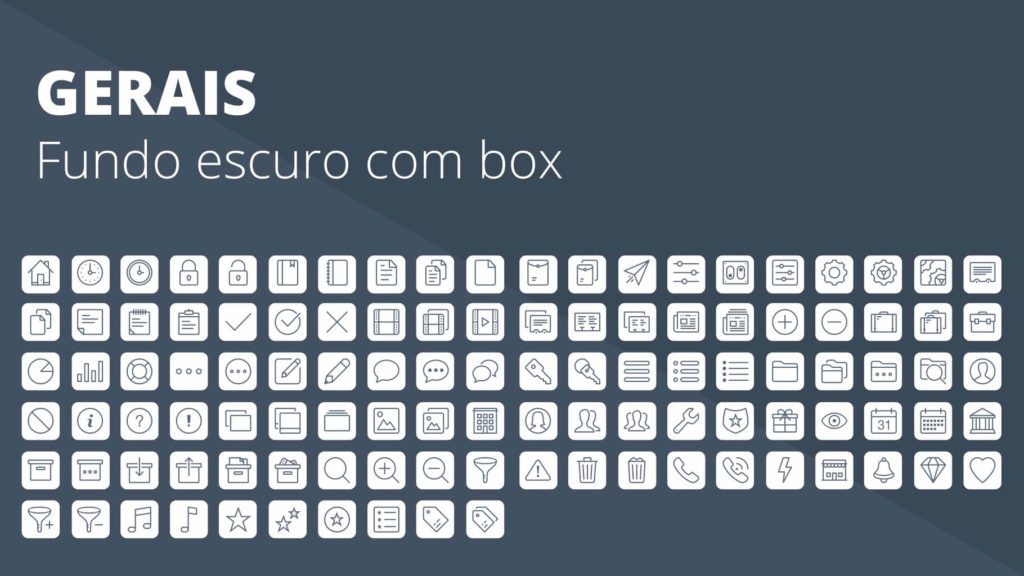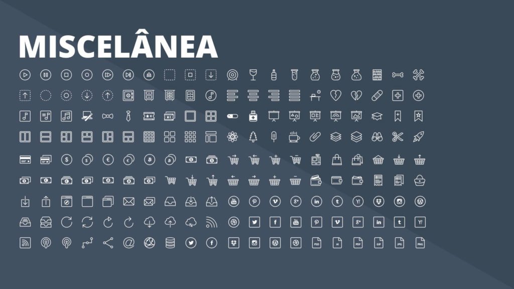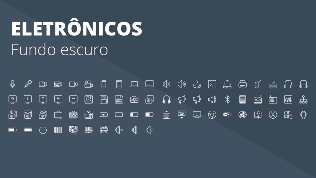 Com a Apresentação de Ícones em Powerpoint PPT você terá centenas de ícones em diferentes formatos, com fundo ou sem fundo, com versões brancas e escuras para serem aplicadas onde quiser.