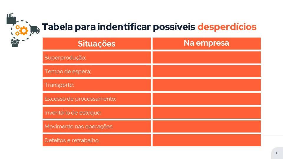 Tabela de possíveis desperdícios
