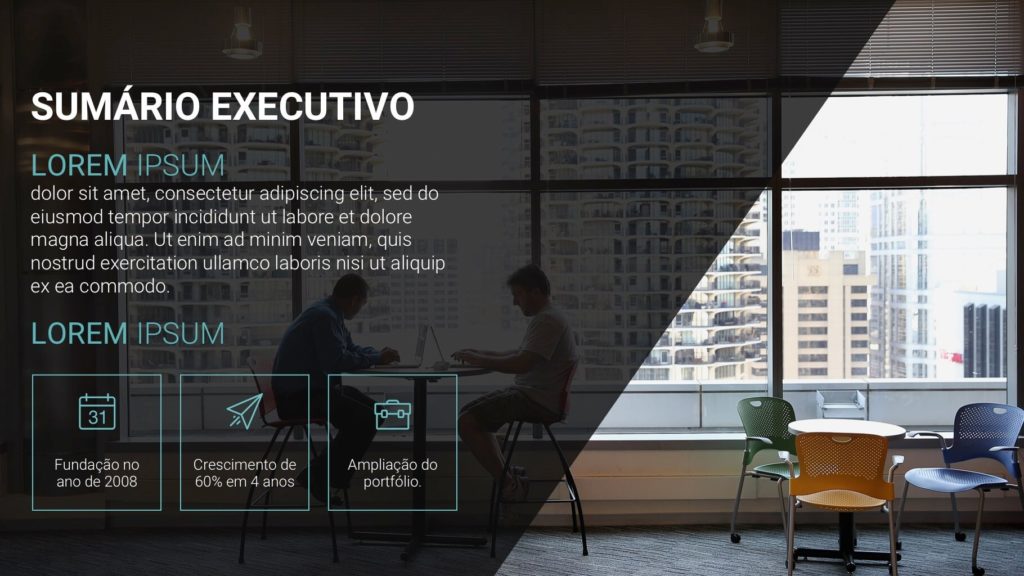 É ideal para empresas que querem impactar em sua apresentação de negócio, mas sem consumir muito tempo para executar essa tarefa de montar os slides. Aqui você encontra slides prontos e editáveis para fazer seu Powerpoint brilhar no pitch. Todos os slides que vem com o modelo são 100% editáveis no Powerpoint e você pode alterar as cores, imagens, textos, gráficos e tabelas, também sendo possível adicionar novas informações ou ícones na apresentação.