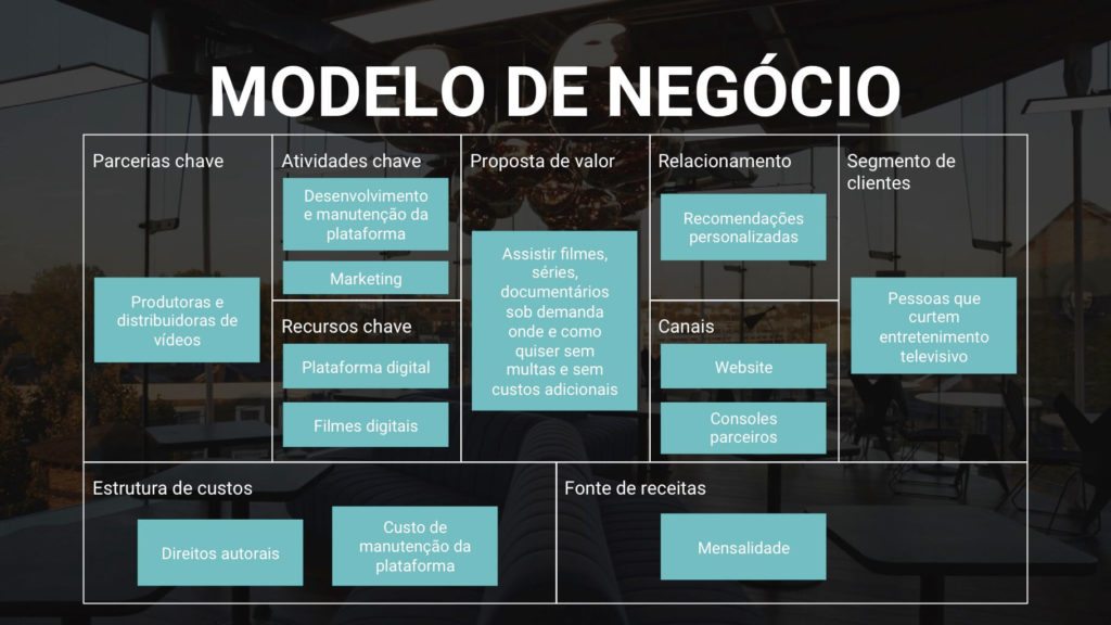 O modelo de apresentação é feita por um Designer que teve o cuidado de montar uma apresentação que saltasse aos olhos ao mesmo tempo que atinja o objetivo principal de mostrar a empresa para futuros investidores.
