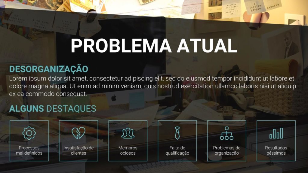 Ao mesmo tempo que toda a equipe está alocada no produto e não tem tempo para se dedicar a esse tipo de tarefa de criar slides para uma apresentação, muitas vezes o próprio sócio acaba fazendo esse trabalho e, se ele não tem habilidade como designer, acaba tendo um resultado abaixo do esperado.