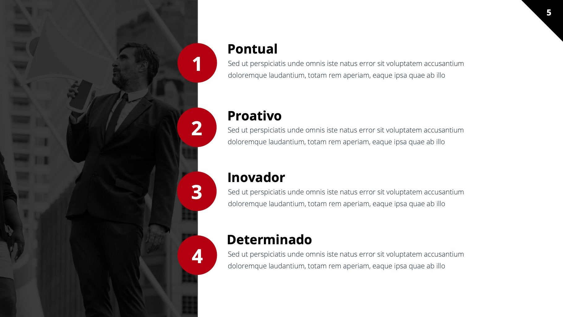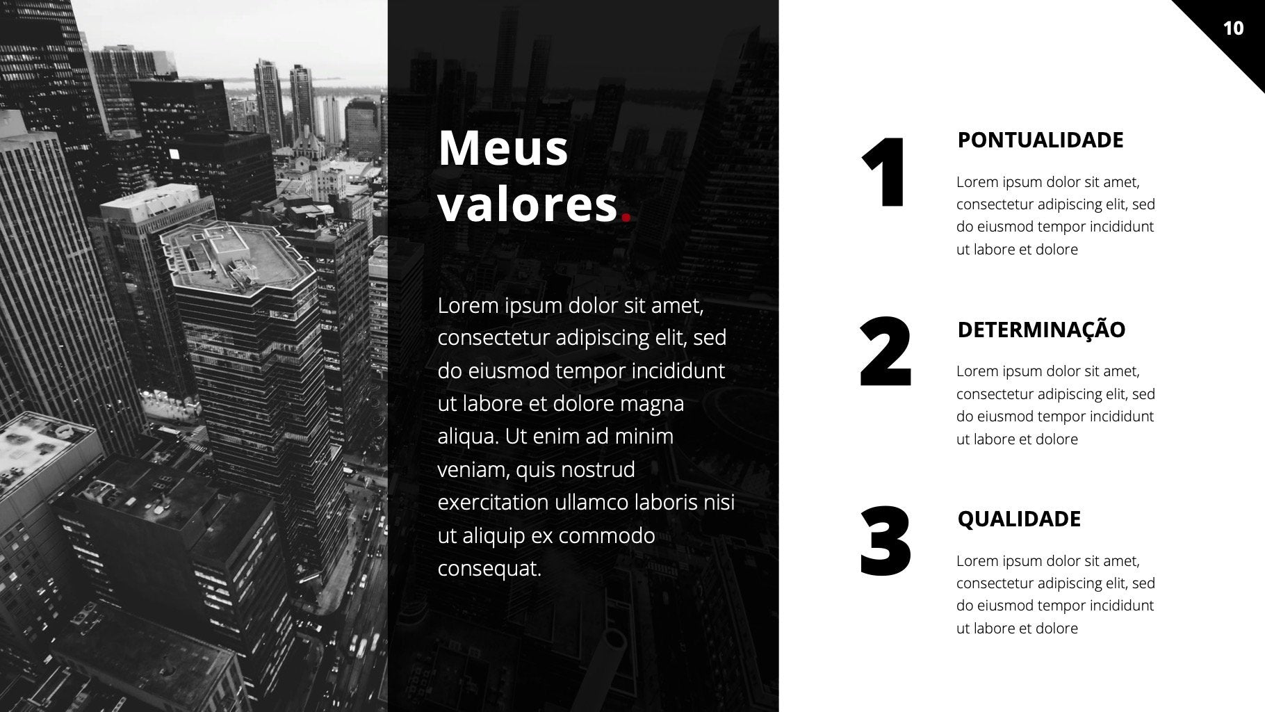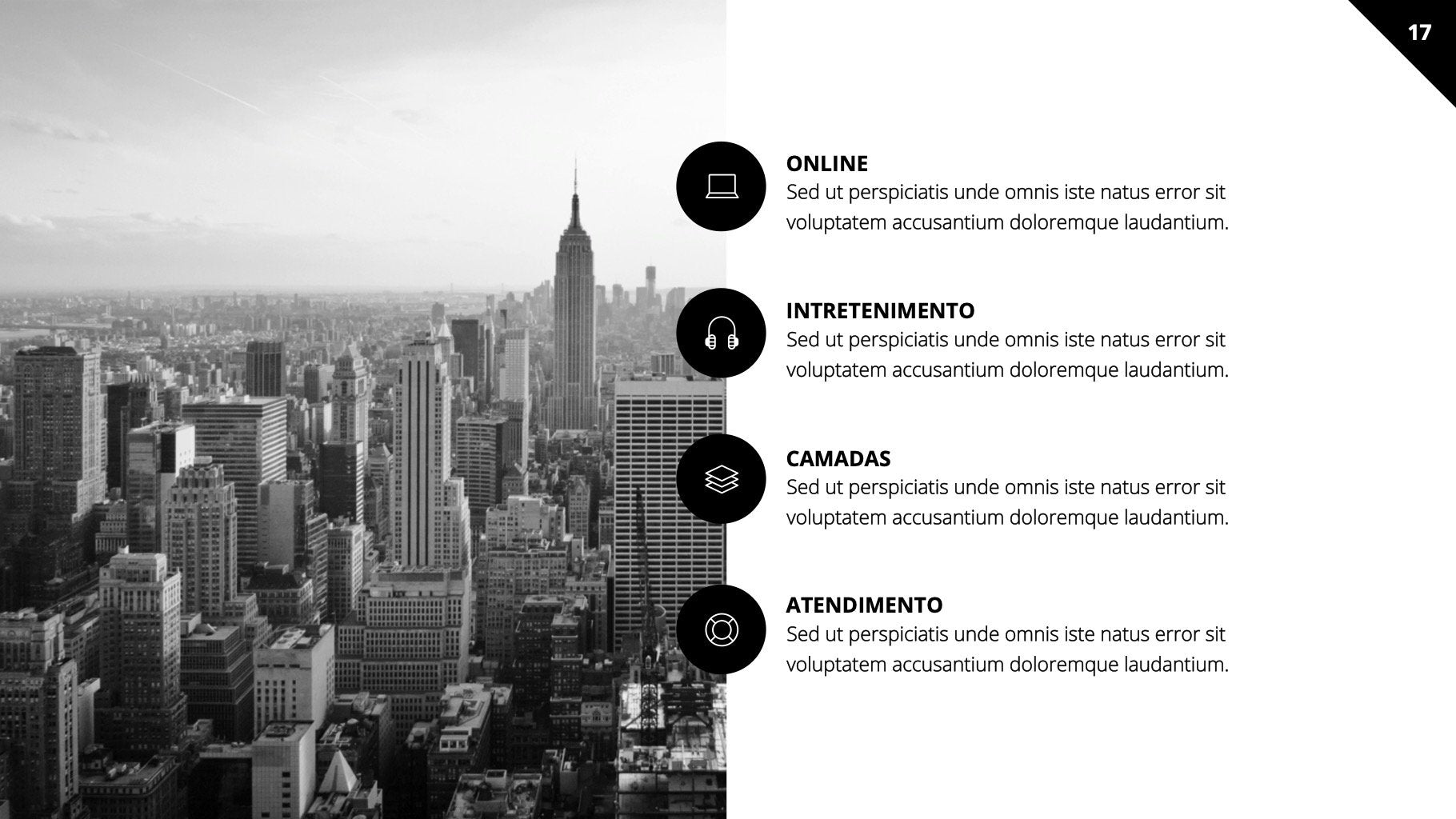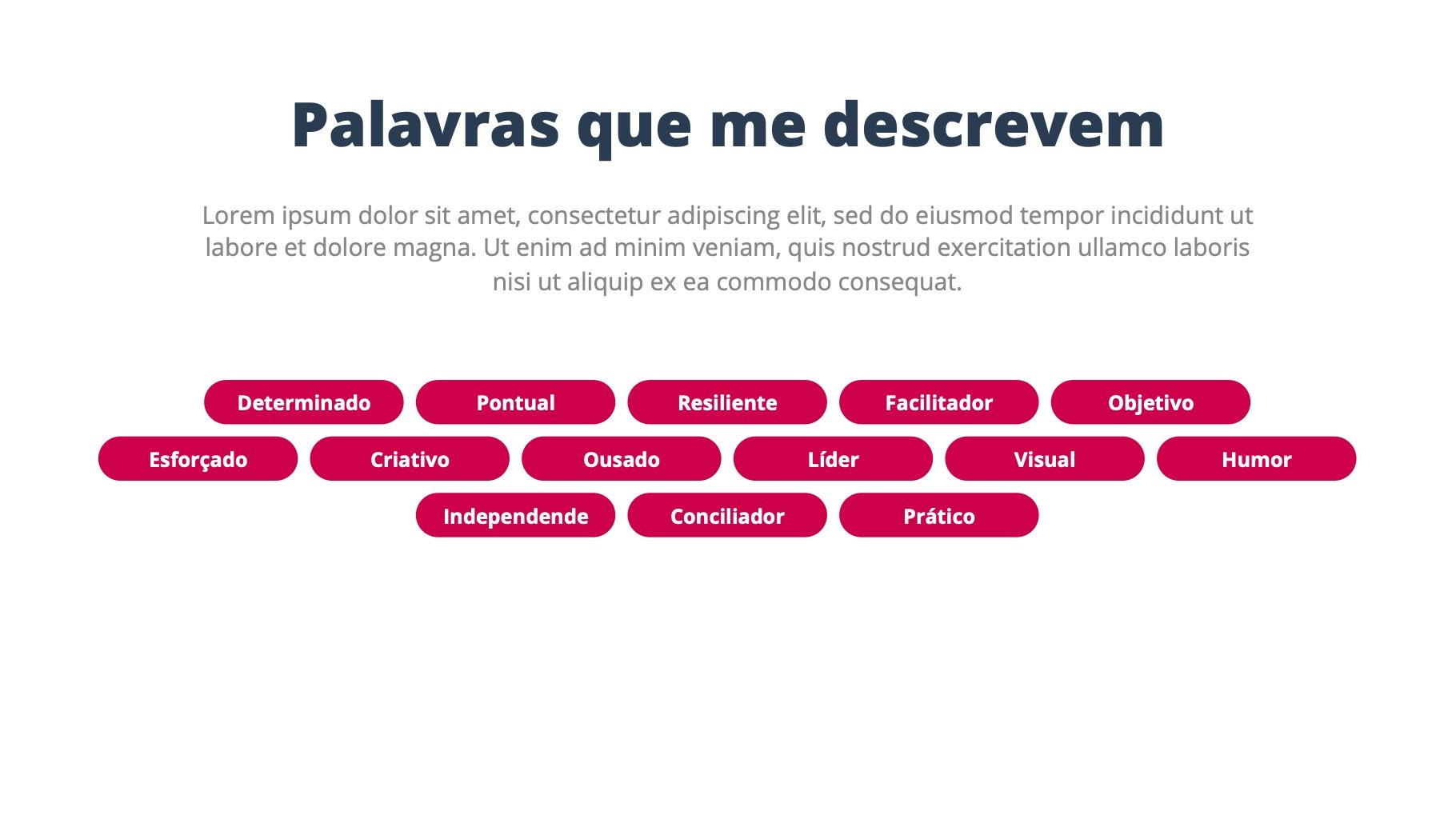 Com placeholder de imagens: O placeholder é um espaço reservado para imagens. Cada slide tem seu placeholder específico para inserir fotos de fundo, membros da equipe, produtos, etc. O placeholder pode ser retangular ou elíptico, mas bastará que você arraste sua imagem para dentro do elemento e a imagem toma a forma desse elemento automaticamente! É muita facilidade.
