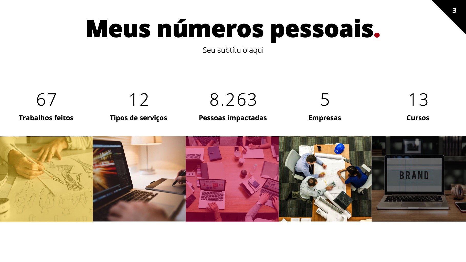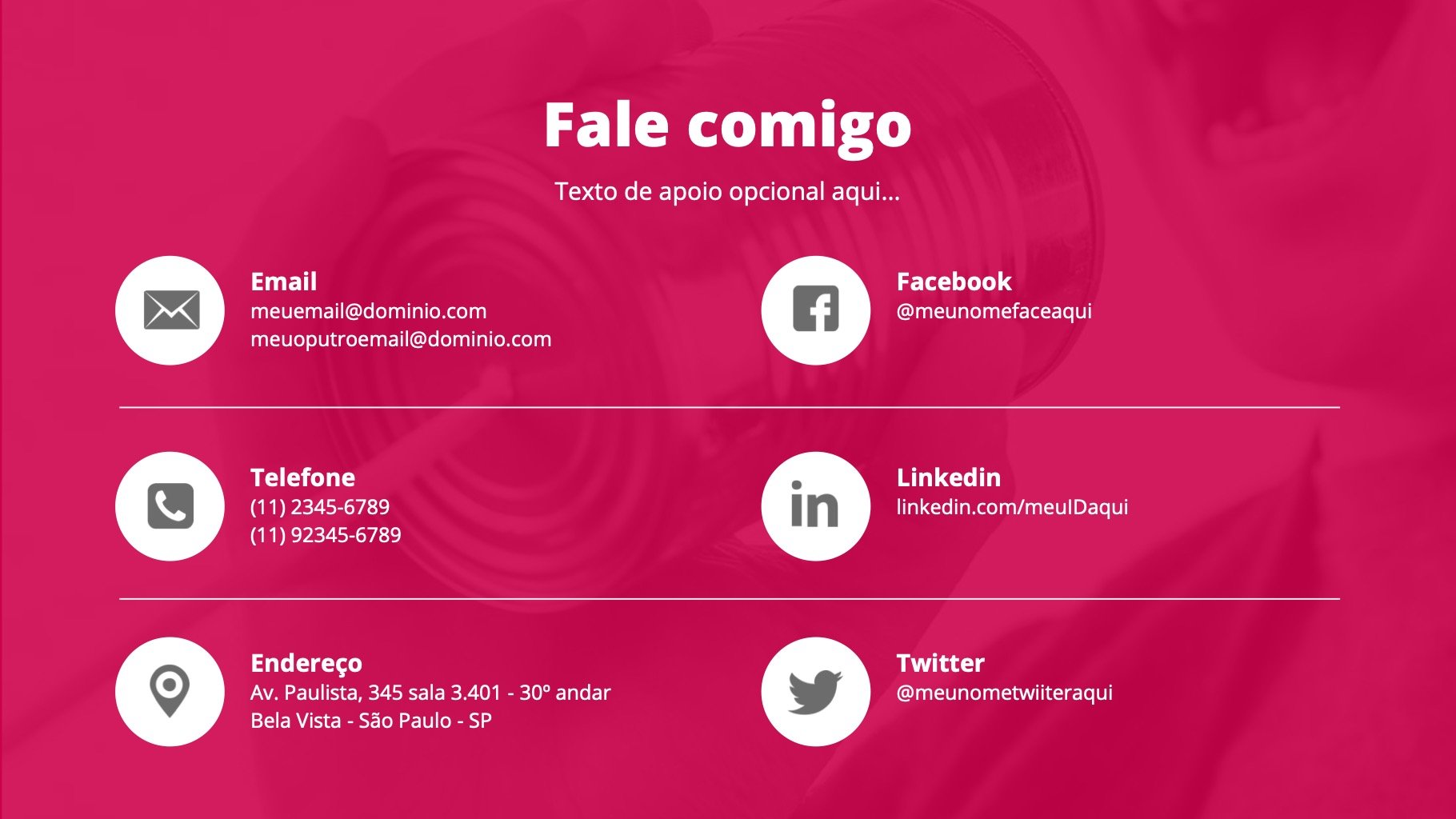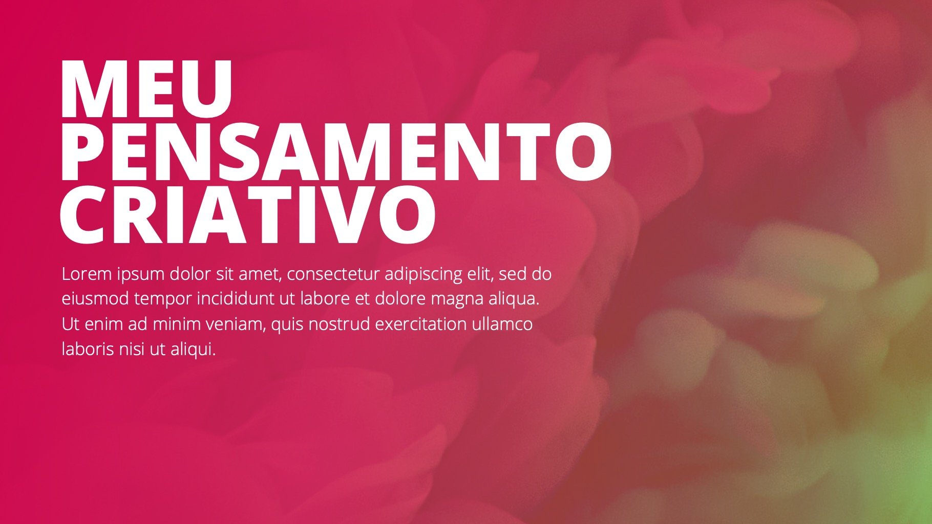 100% editável: Todas as cores, imagens e textos podem ser editados. Para facilitar, você já baixa a apresentação com 3 variações de cores (laranja, azul e rosa).
