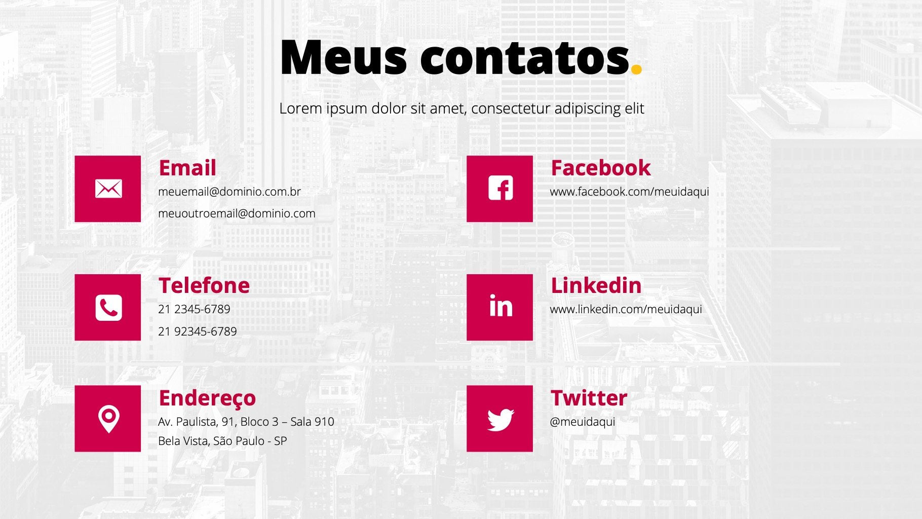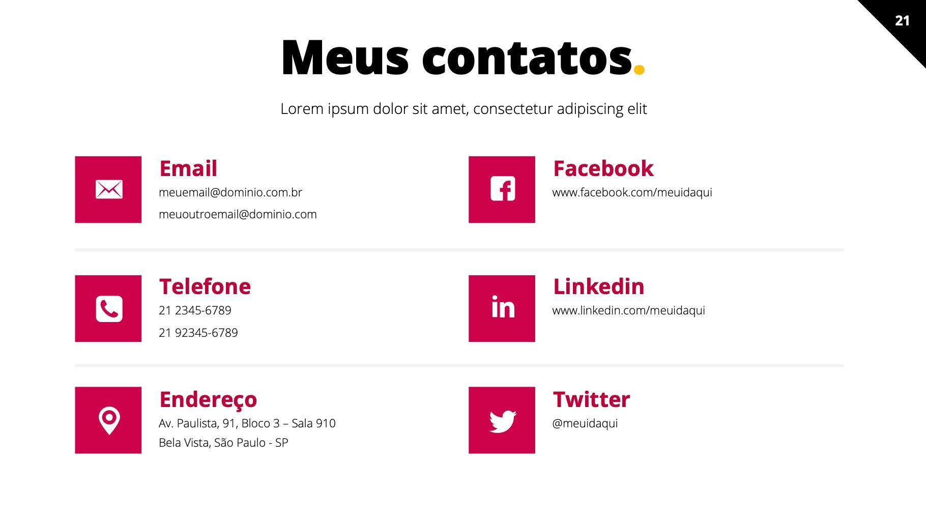 A apresentação Pessoal Criativa Powerpoint MeetMe é ideal para pessoas que precisam montar apresentações sobre suas habilidades, históricos profissionais e acadêmicos, personalidade, valores e muito mais. Com estes slides prontos você consegue montar uma apresentação de impacto em poucos minutos.