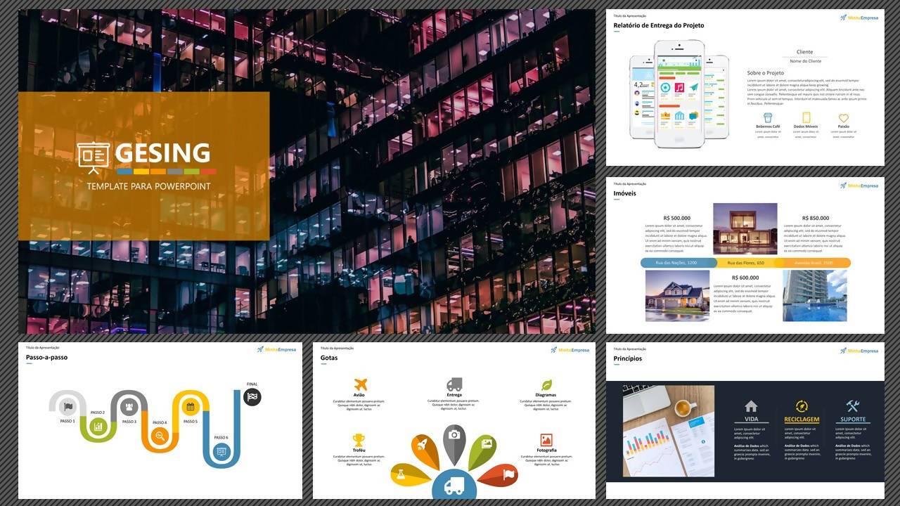 Gesing é um tema profissional de Powerpoint de alta qualidade aplicável a apresentações de controle, gestão, relatórios ou mesmo para uso pessoal. O template possui slides cuidadosamente desenhados, slides criativos, infográficos, galerias de fotos e efeitos, que você pode usar na sua próxima apresentação.
