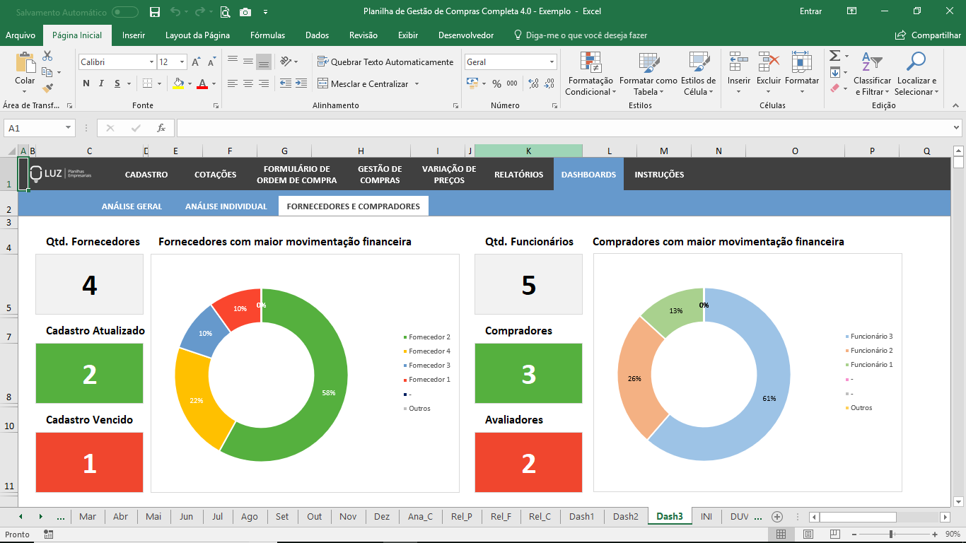Planilha de Gestão de Compras Completa em Excel 4.0Controle o seu processo de compras garantindo que estão sendo feitas cotações, que formulários de ordem de compras estão sendo utilizado e que os melhores preços foram obtidos!