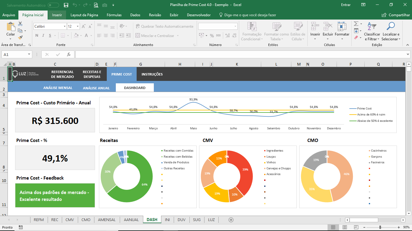 Planilha de Prime Cost em Excel 4.0O Prime Cost (ou custo primário) é um dos principais índices de desempenho operacional para bares e restaurantes. Com ele você descobre facilmente se está mantendo custos com mercadorias e com mão de obra controlados ou se precisa reavaliar sua gestão financeira.