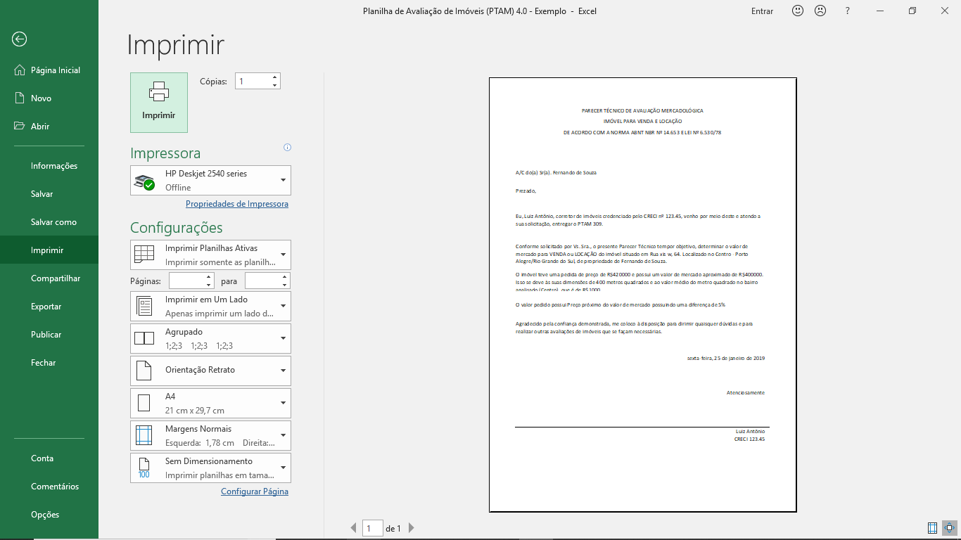 Parecer pronto para impressão com todas as principais informações utilizadas na planilha