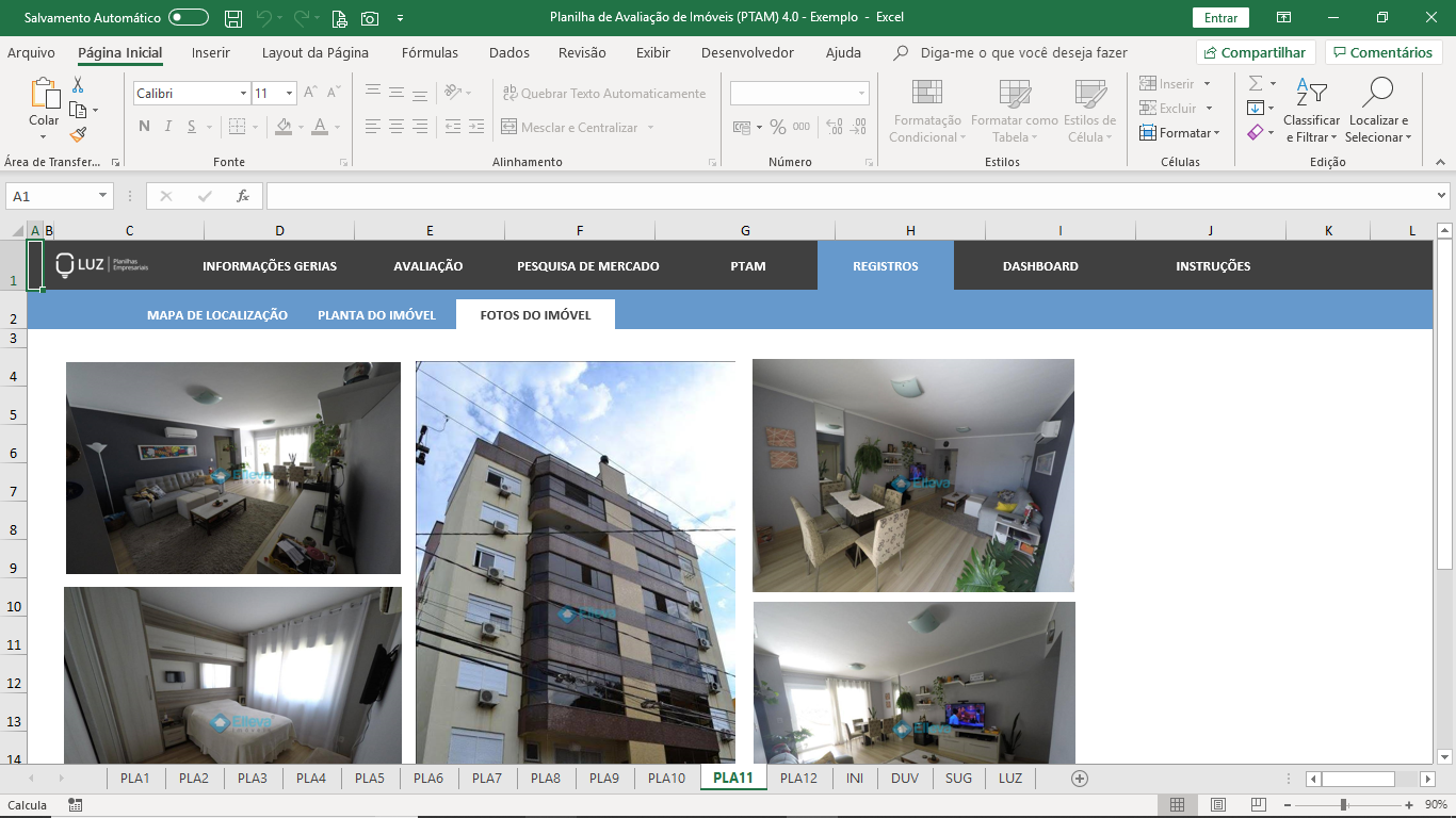 Área para compilação de informações e imagens do mapa de localização, da planta do imóvel e das fotos do imóvel
