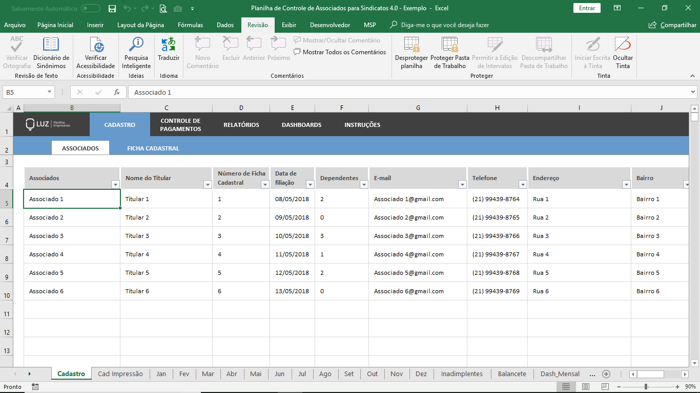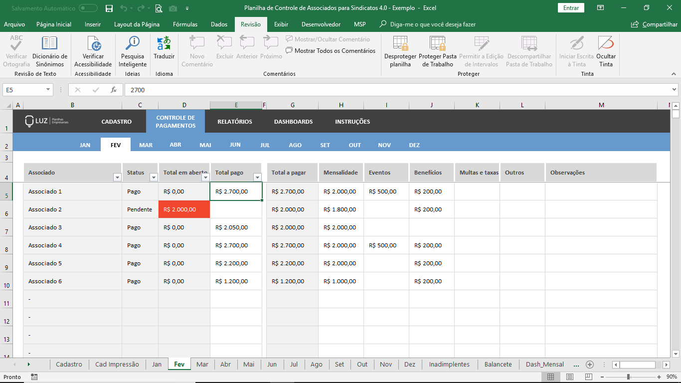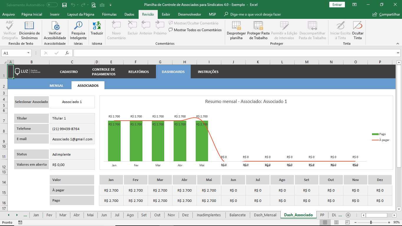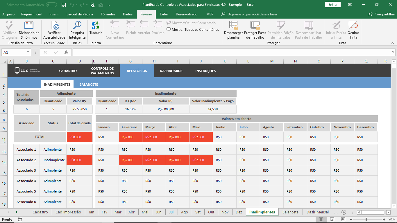 Veja uma lista com todos os seus associados, seus pagamentos mensais e quais meses não foram pagos corretamente
