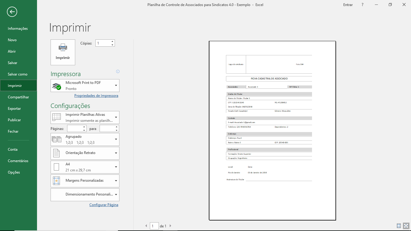 Escolha um associado e veja todas as suas informações prontas para serem impressas nessa ficha cadastral automática
