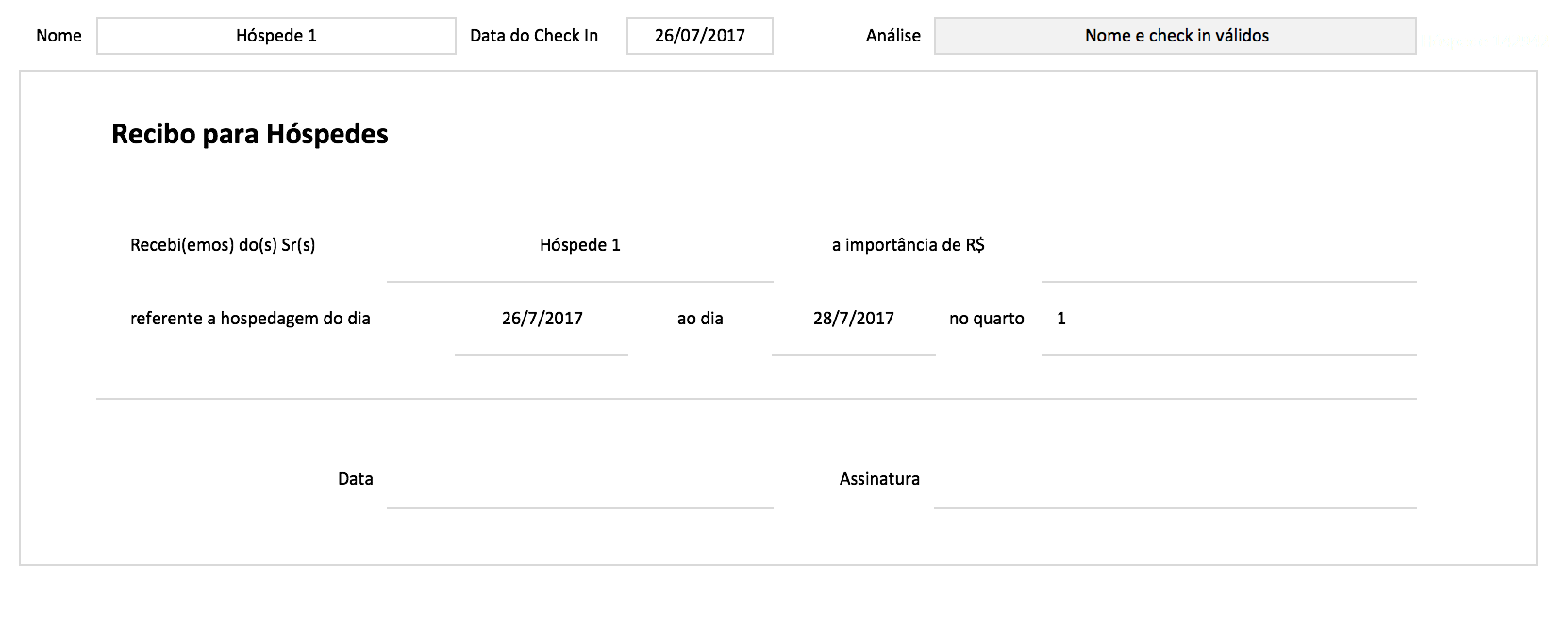 Por fim, a planilha lhe permite emitir recibos já preenchidos automaticamente e prontos para impressão para seus hóspedes. No mais, você também pode optar por lançar esse recibo em nome da empresa que está pagando para estadia.