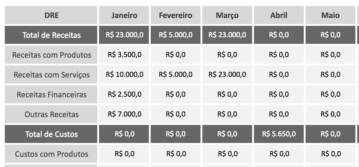 Além do fluxo de caixa, a planilha também monta automaticamente o demonstrativa de resultado da sua empresa.